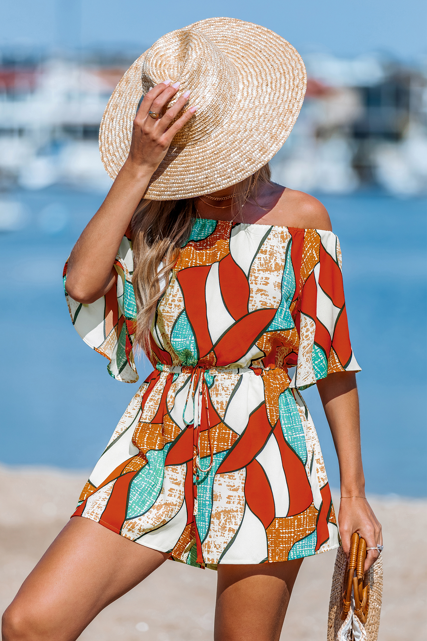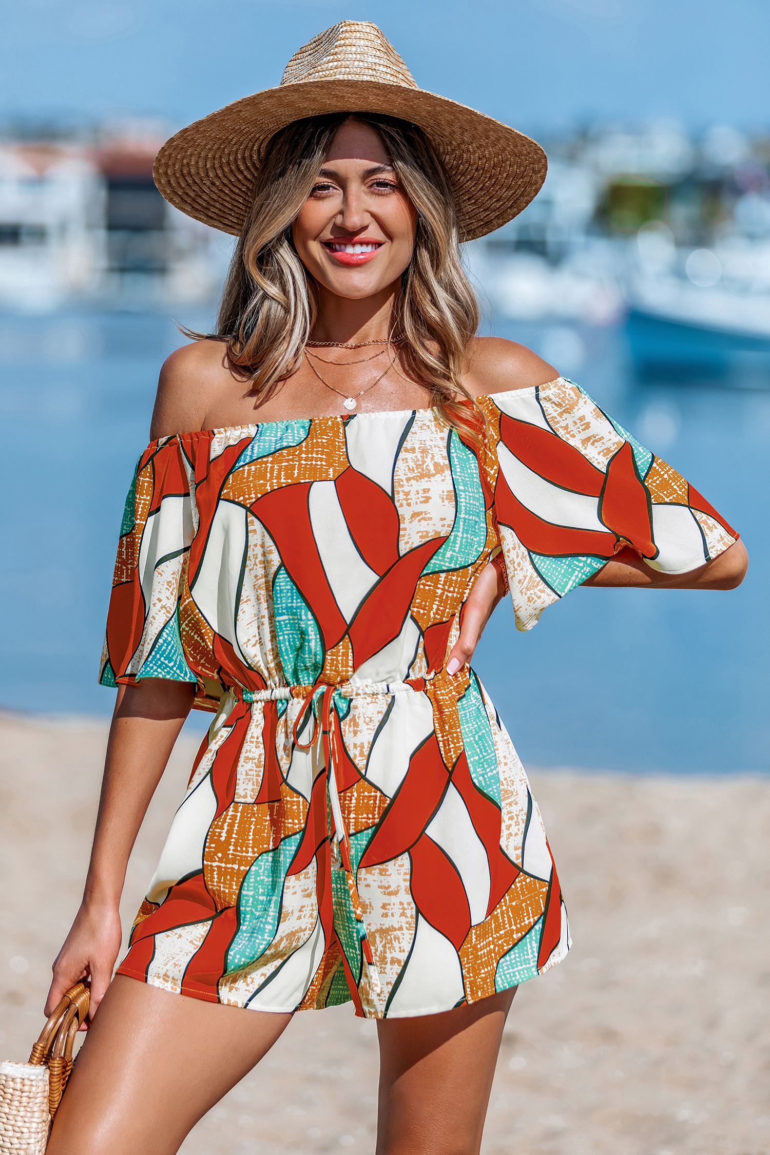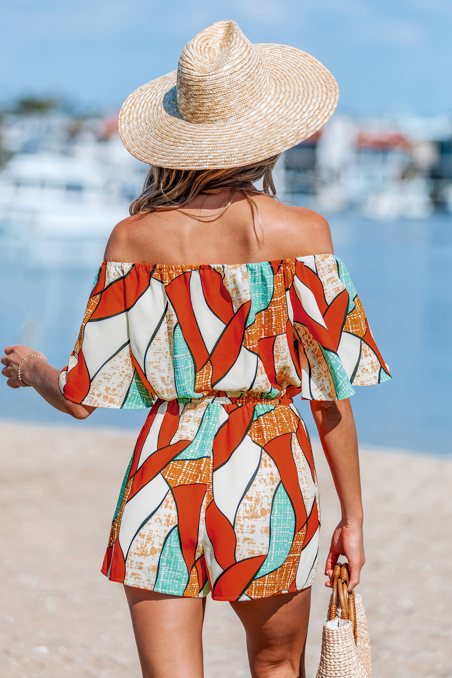 HomeAbstract Rhythm Orange Romper