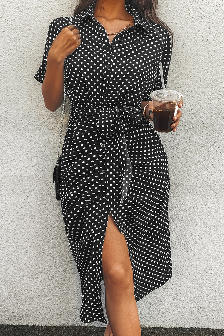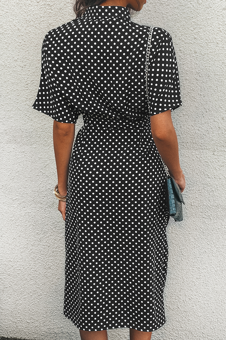 Alaia Short Sleeve Shirt Collar Frill Dots Dress