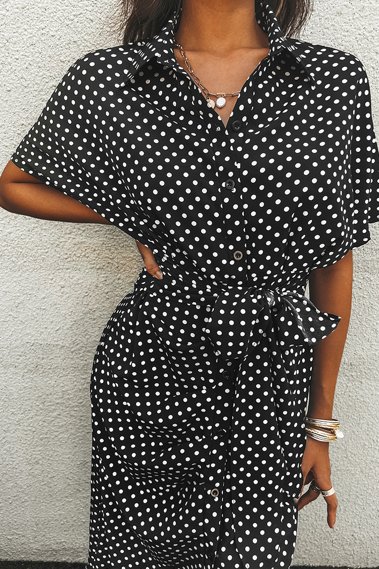 HomeAlaia Short Sleeve Shirt Collar Frill Dots Dress