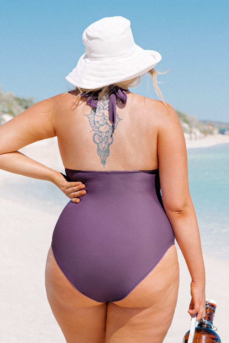 • Amelia Ruched Halter Plus Size One Piece Swimsuit