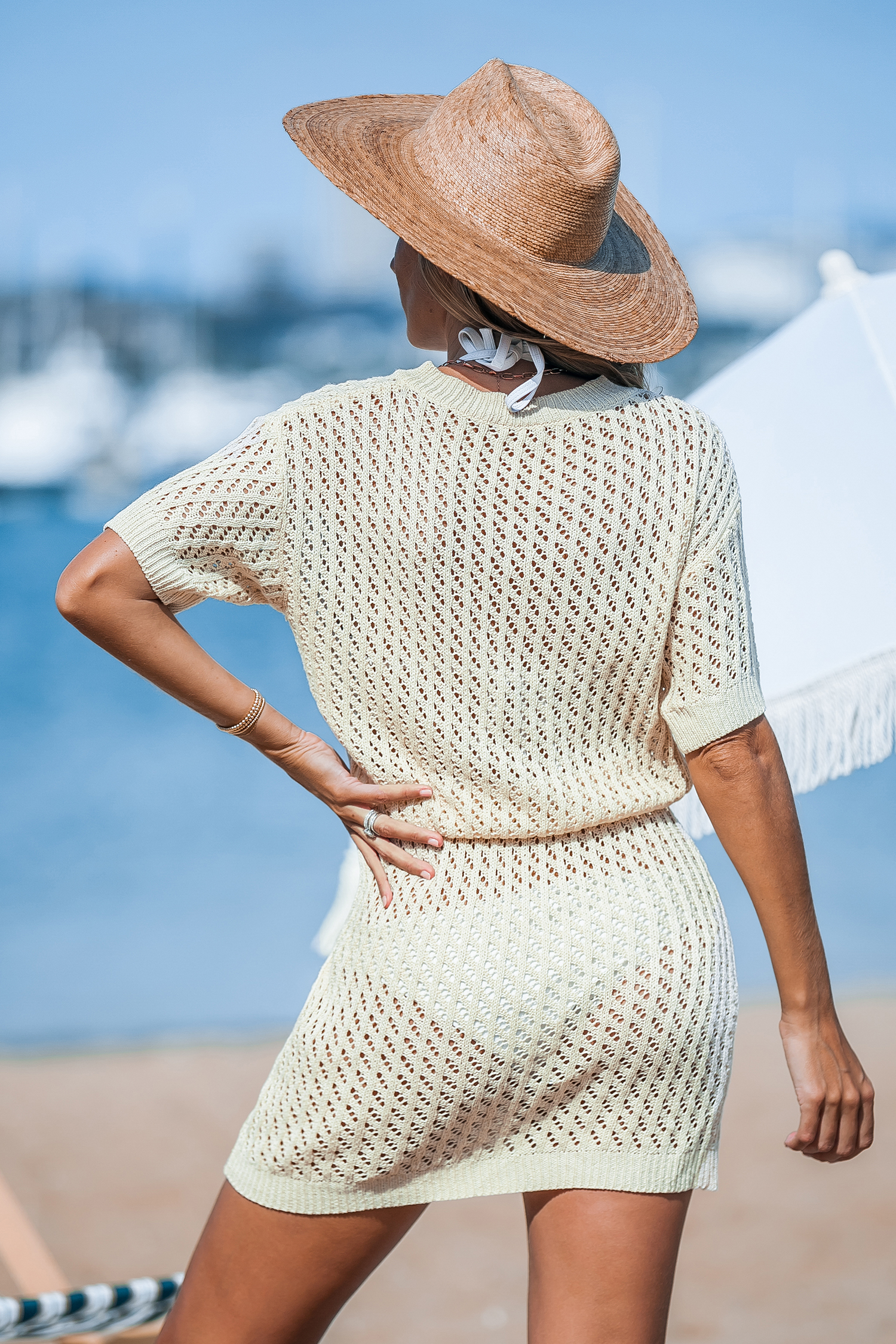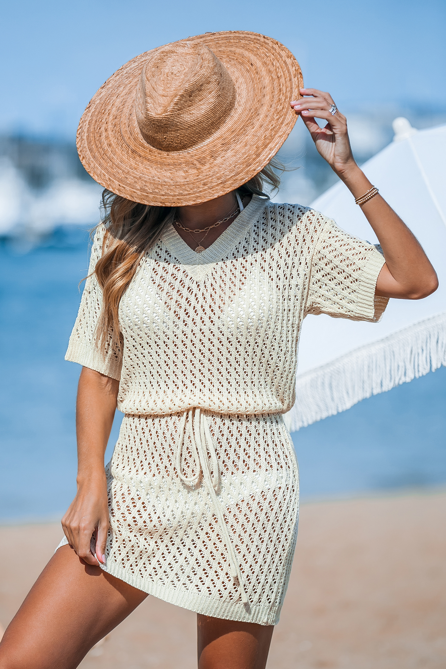 HomeApricot Drop Shoulder Open Knit Mini Cover-Up