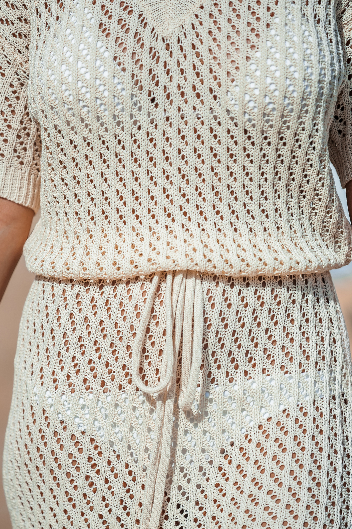 Apricot Drop Shoulder Open Knit Mini Cover-Up