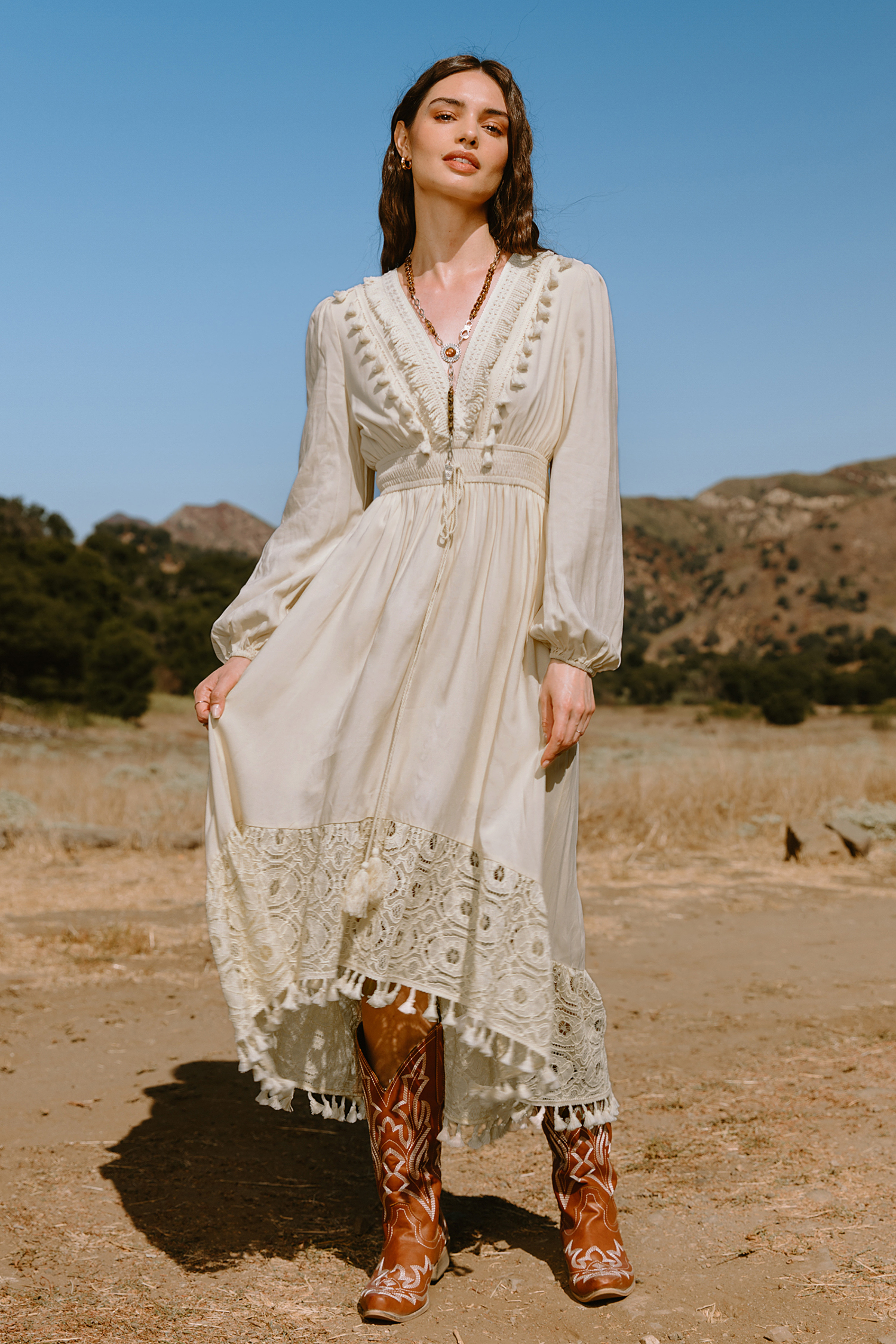 HomeApricot Plunging Blouson Sleeve Midi Dress