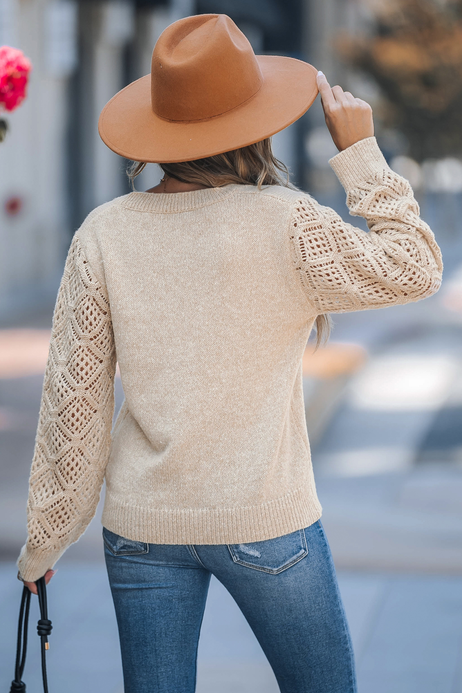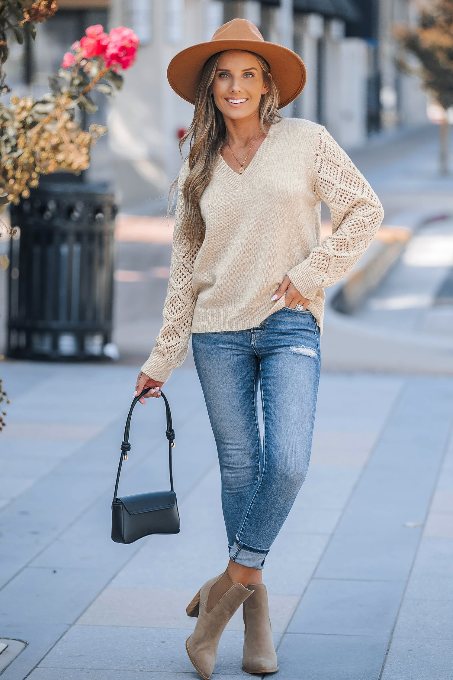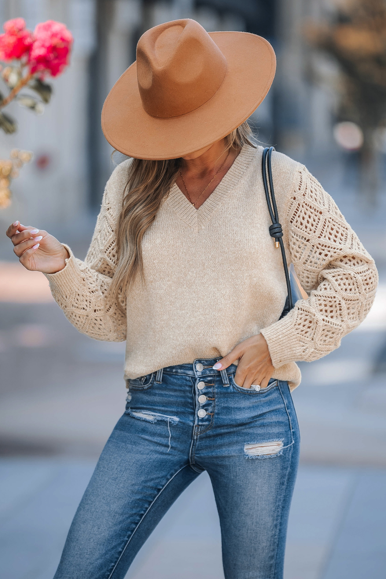 Apricot V-Neck Long Sleeve Sweater