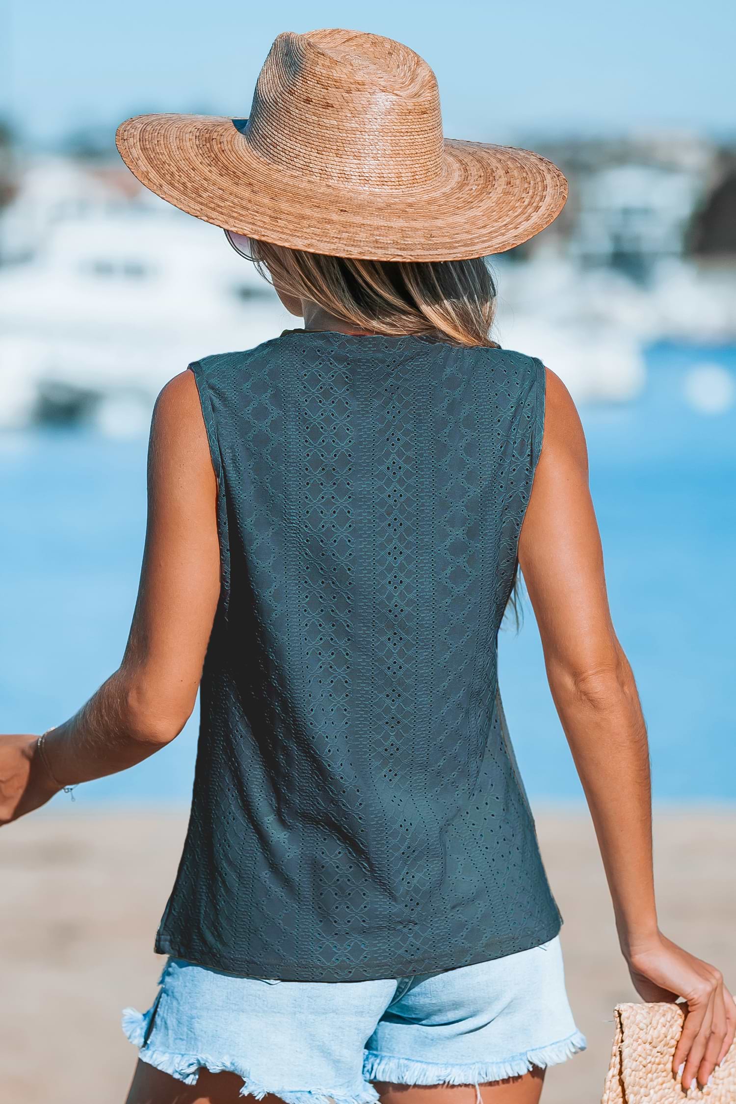 HomeAqua High-Neck Sleeveless Eyelet Tank