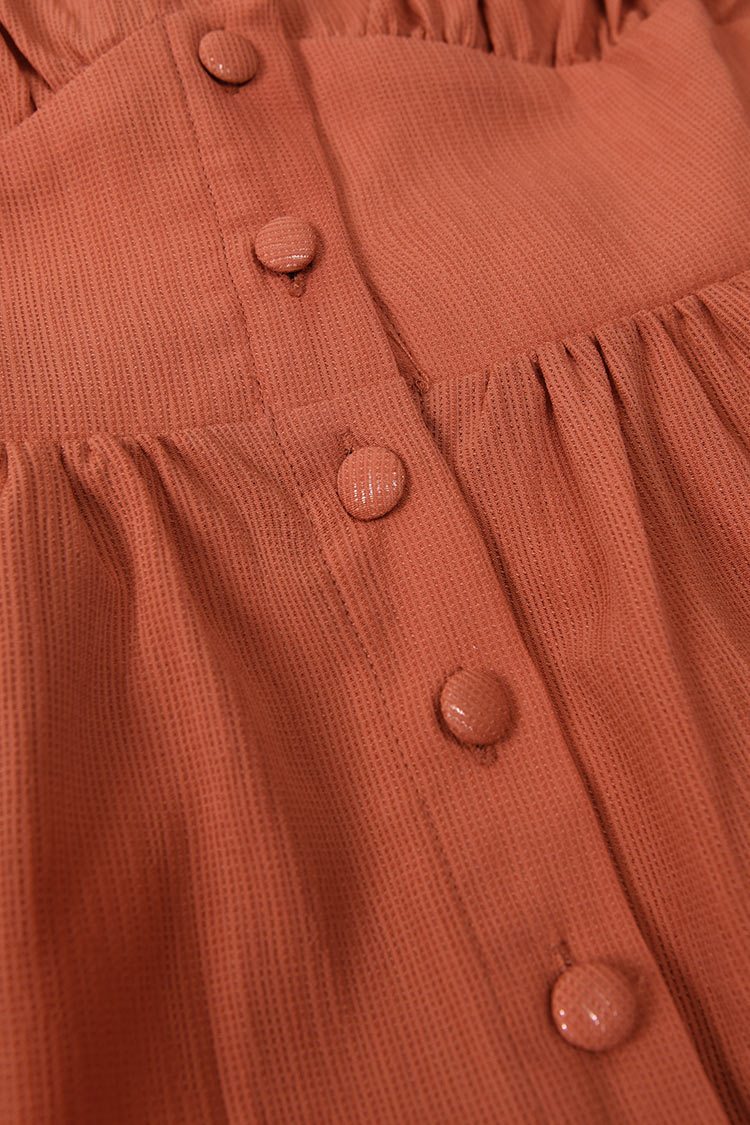 Red Plaid Blouson Sleeve Ruffle Cuff Wrap Mini Dress