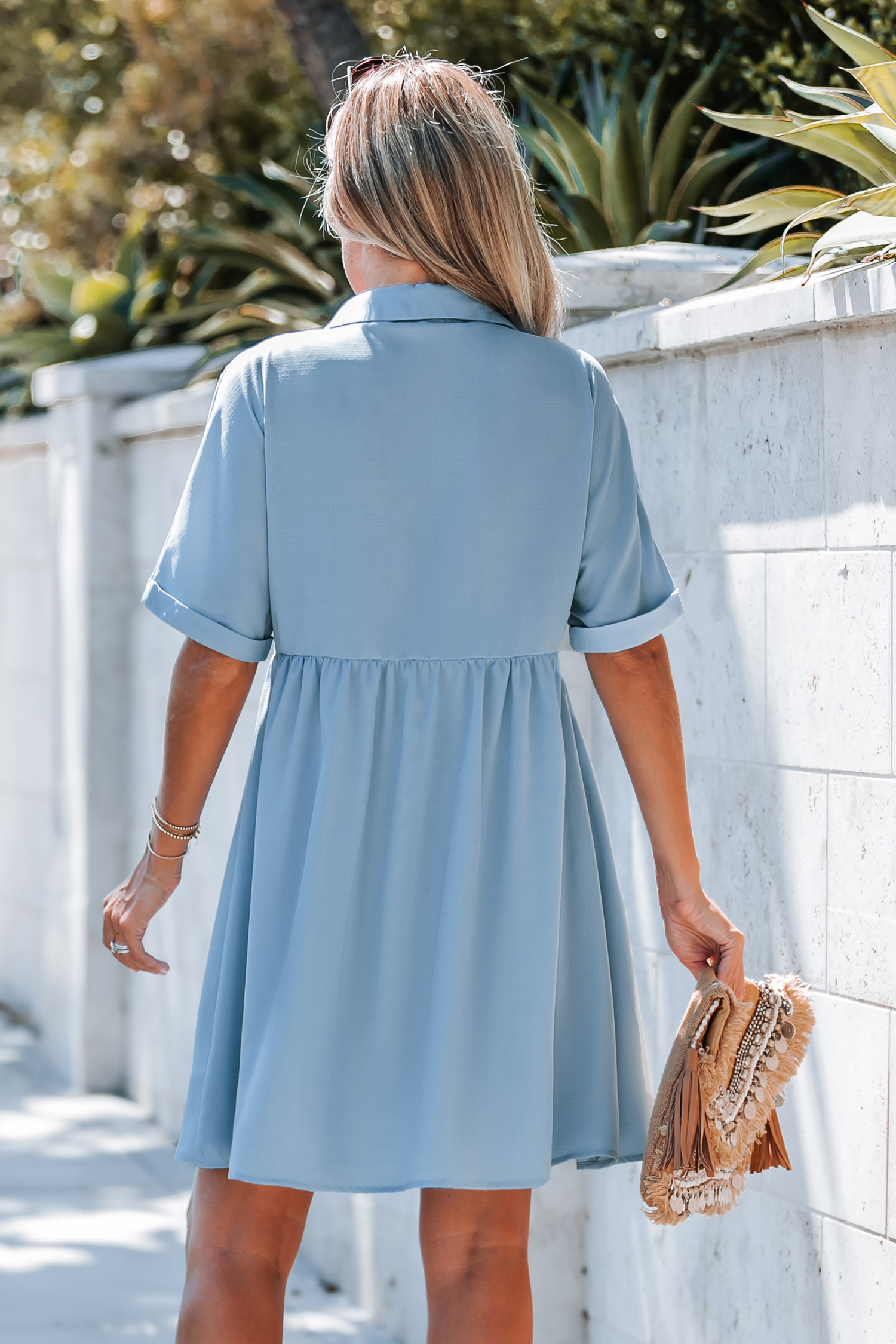 Baby Blue Button-Front Mini Dress