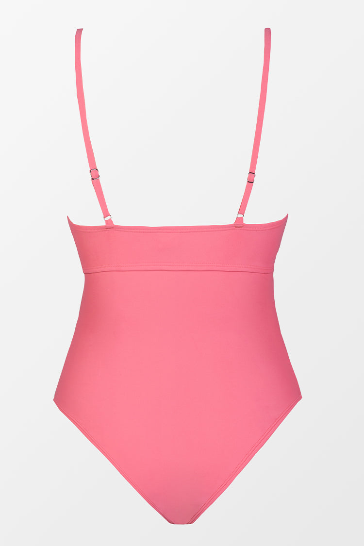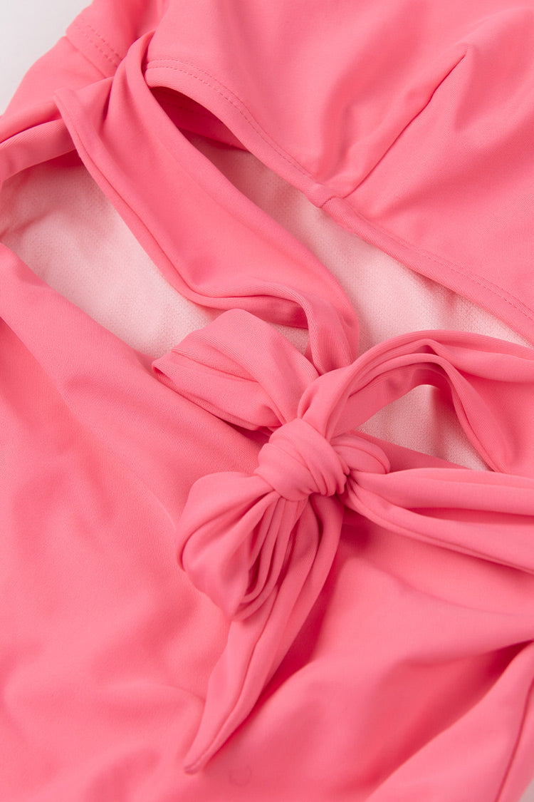 Beach Party Tie Front Wrap Pink One Piece Swimsuit