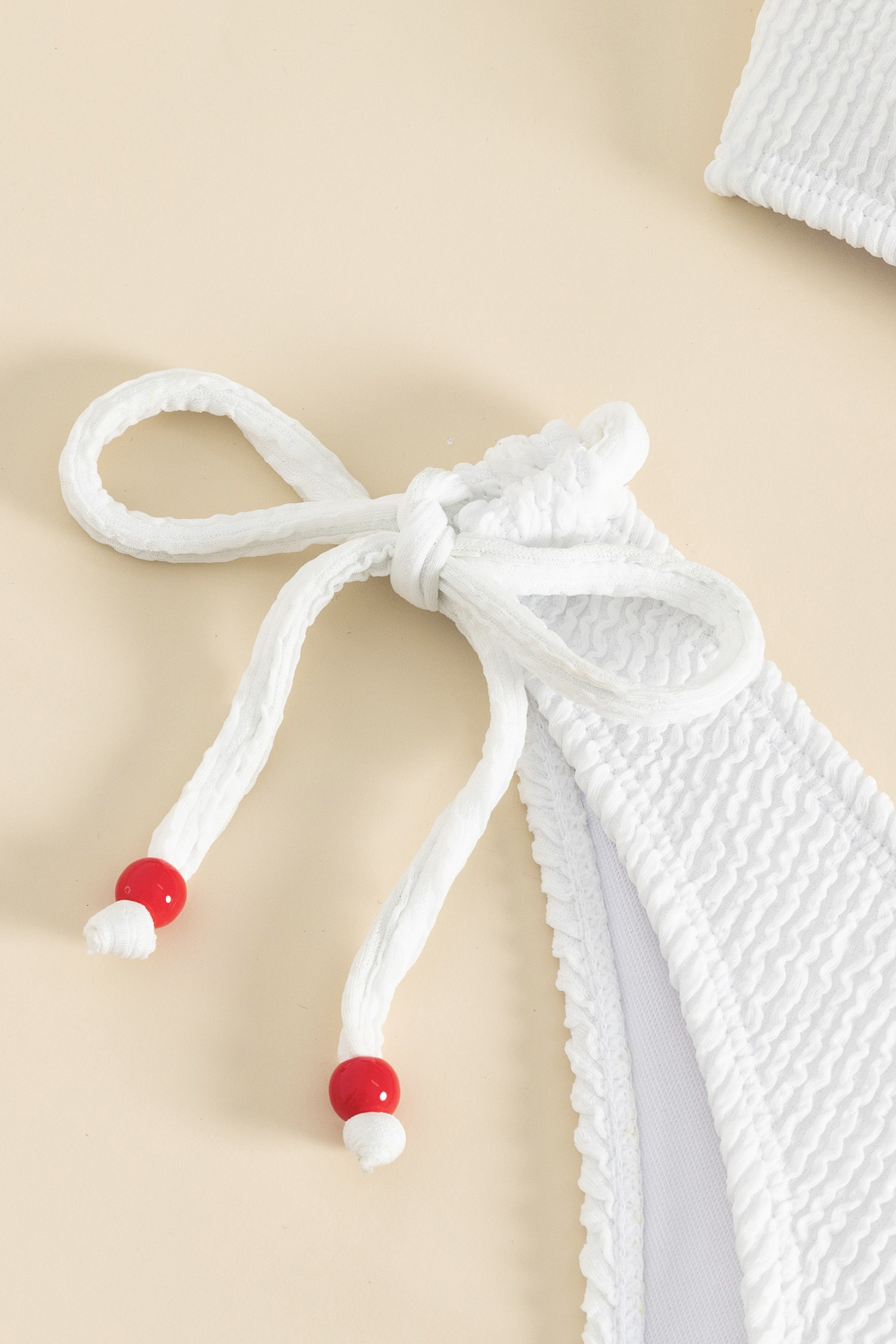 Beaded Tie Front Bralette & Textured Cheeky String Bikini Set