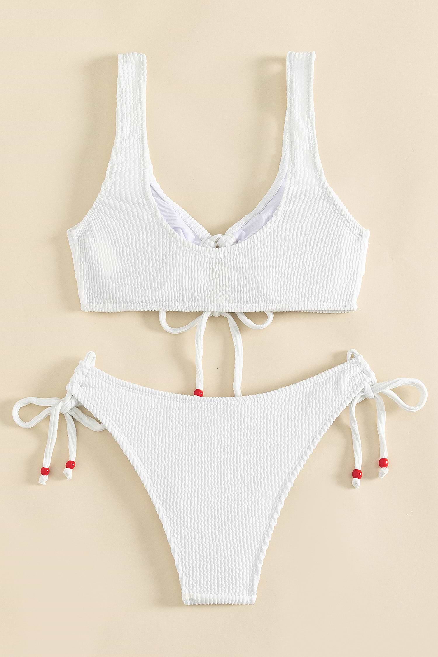 HomeBeaded Tie Front Bralette & Textured Cheeky String Bikini Set