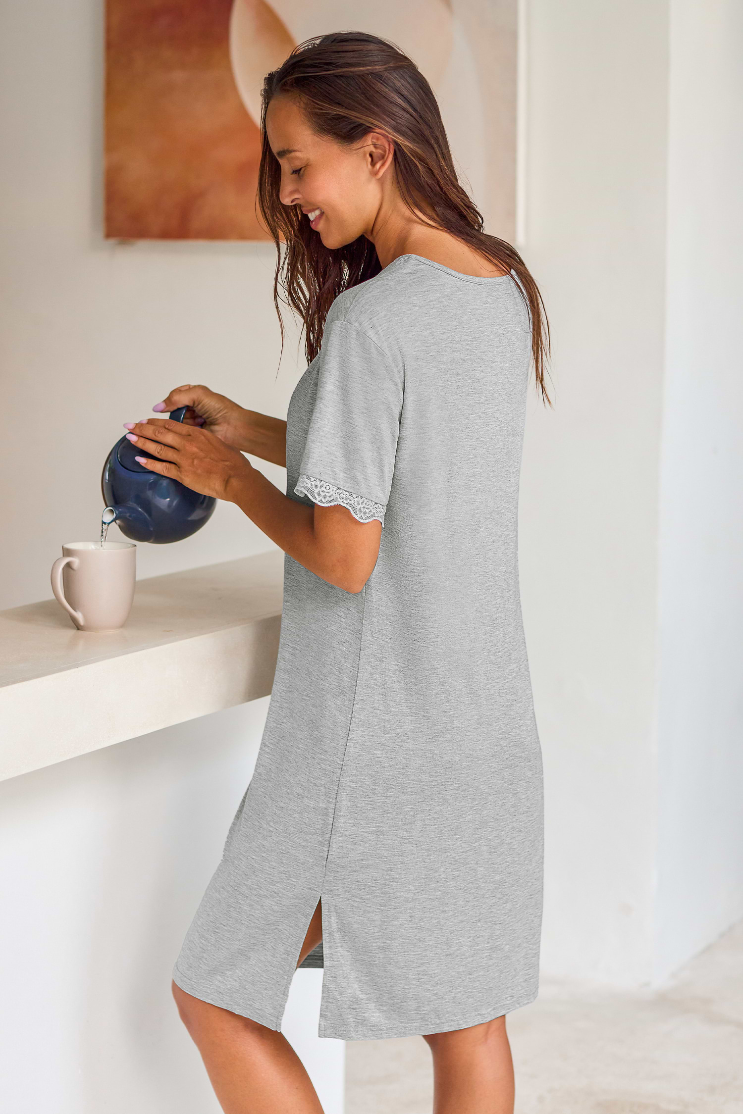The Bedtime Stories Grey Sleep Dress is an easy pick for cozy nights in! A V-neckline and short sleeves keep it relaxed, while lace trim and the mini length give it a sweet, bedtime-ready feel.