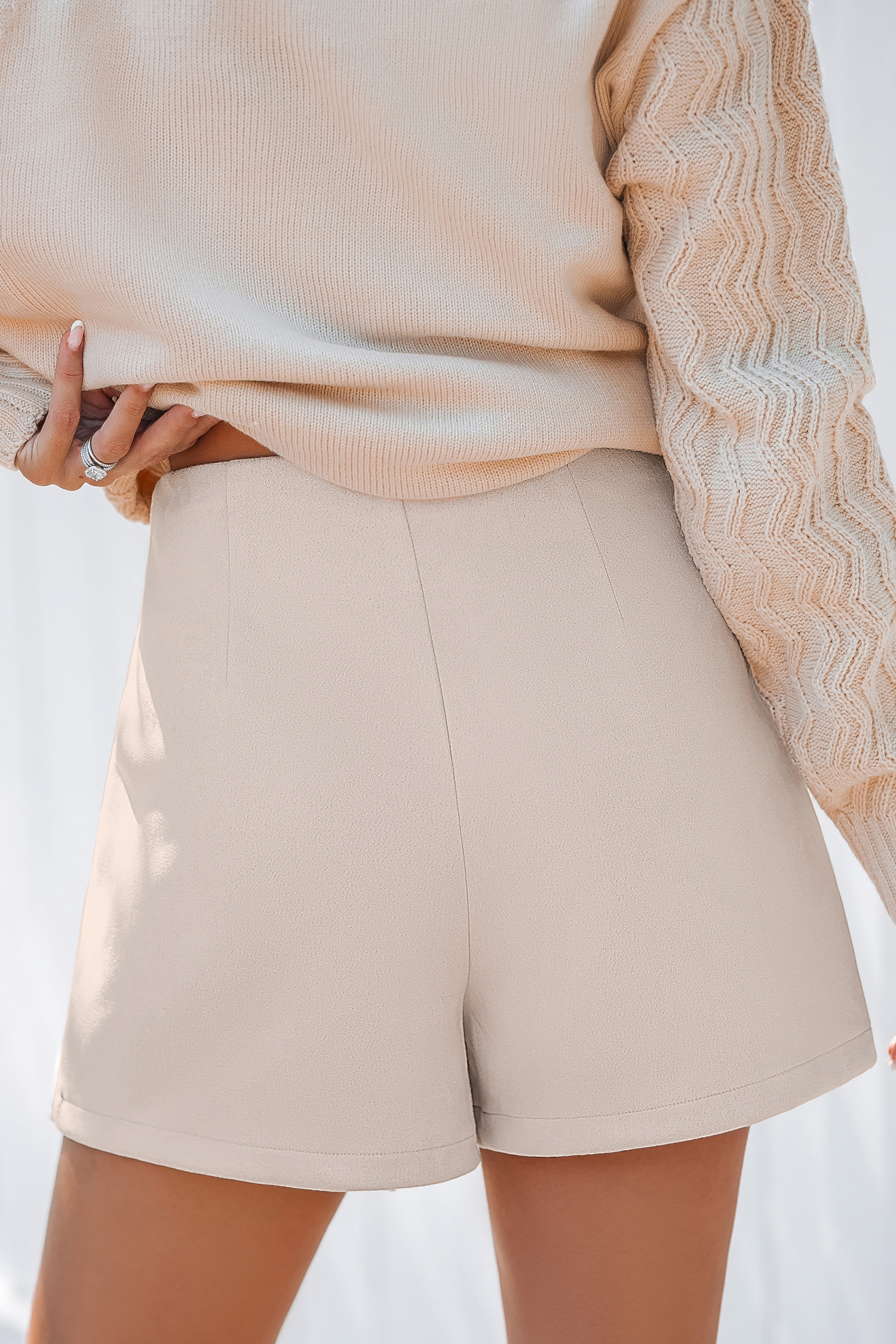 Beige Faux Leather Wrap Straight Leg Skort