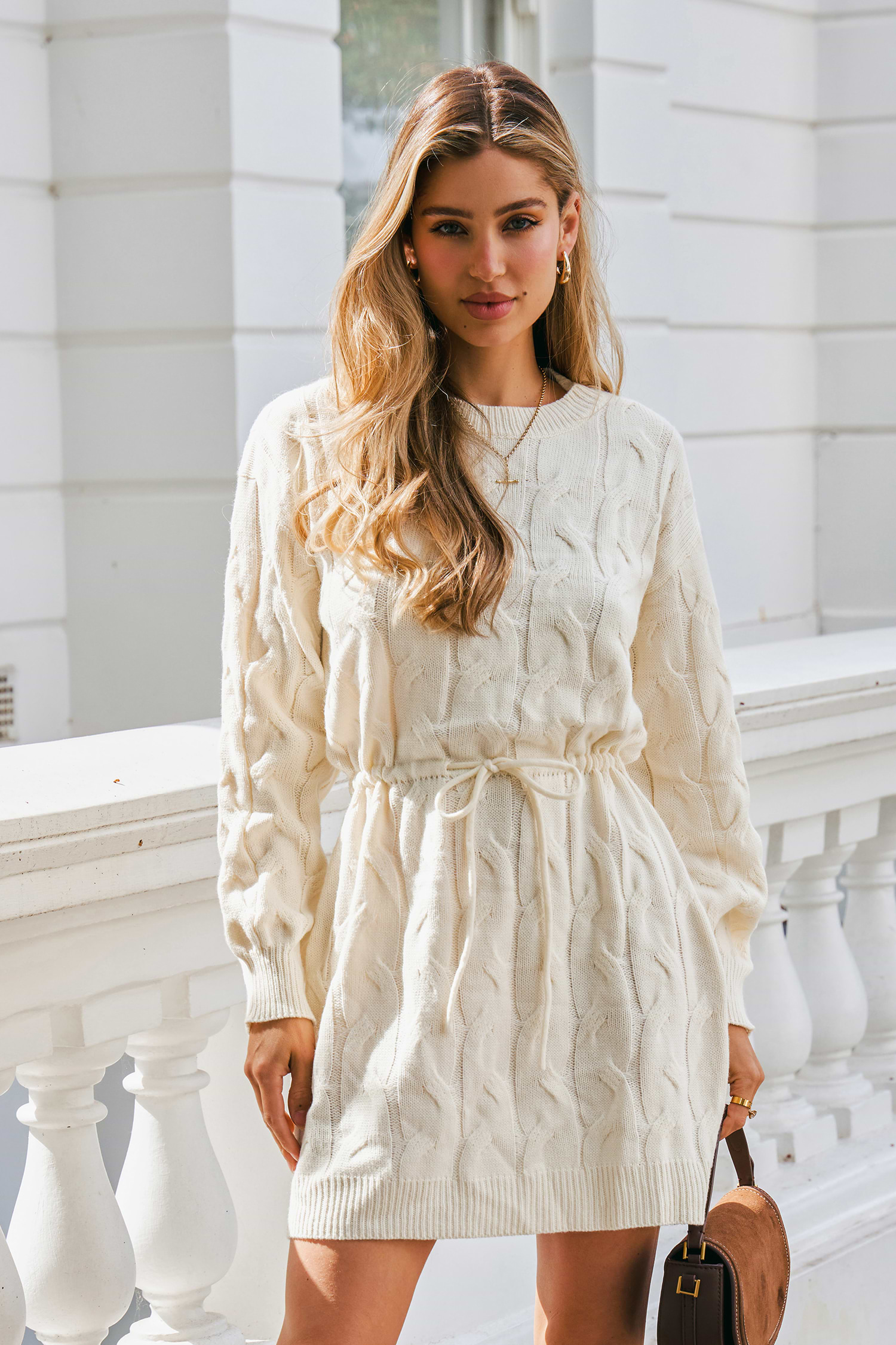 HomeBeige Long Sleeve Ribbed Sweater Dress