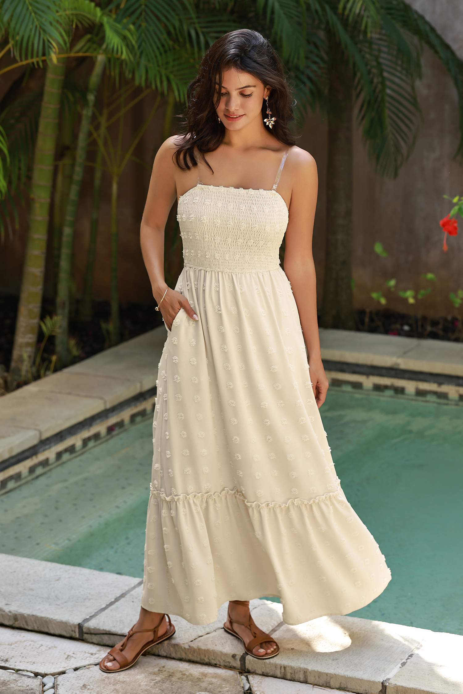 HomeBeige Smocked Bodice Maxi Tube Dress