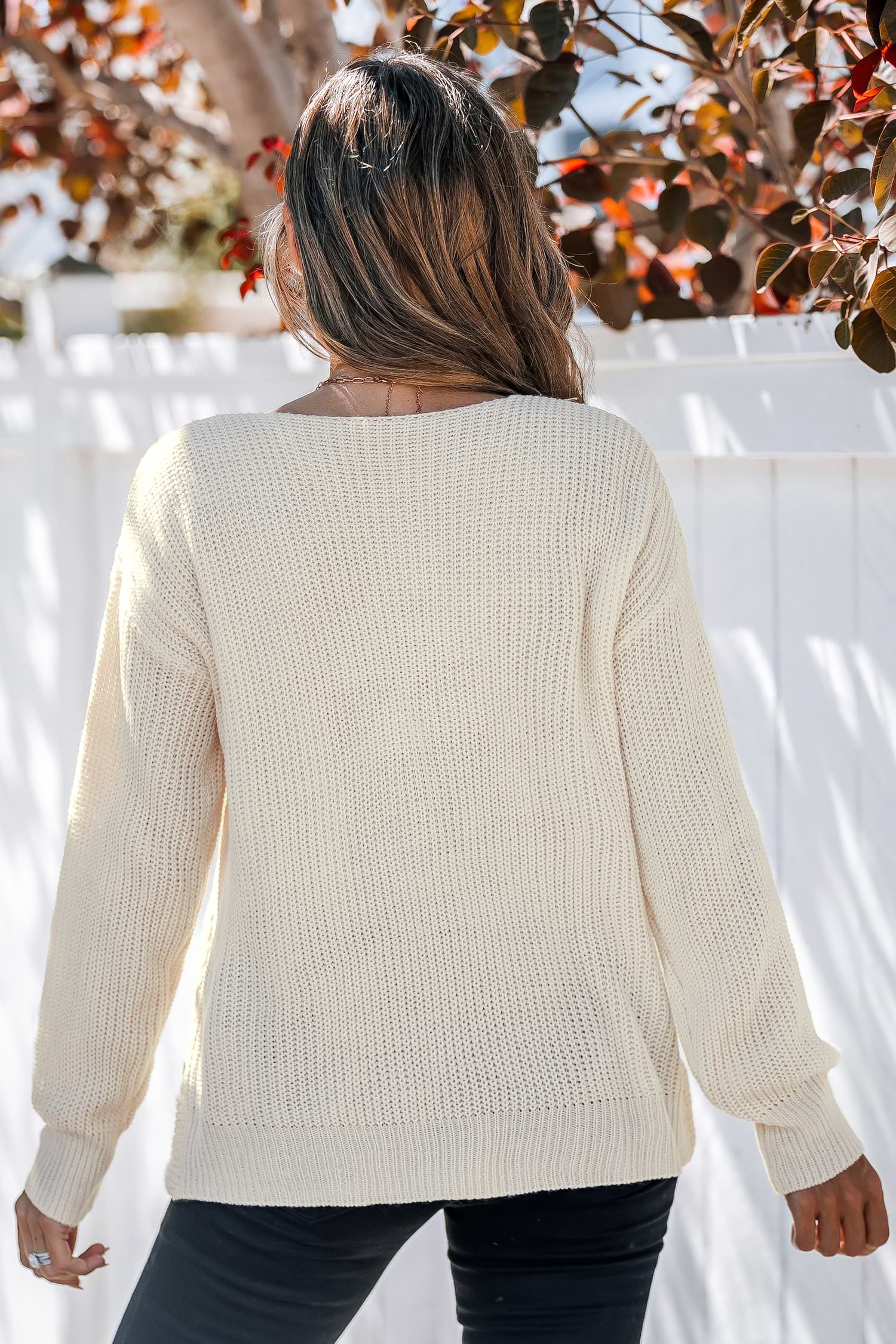 HomeBeige V-Neck Long Sleeve Twist Sweater