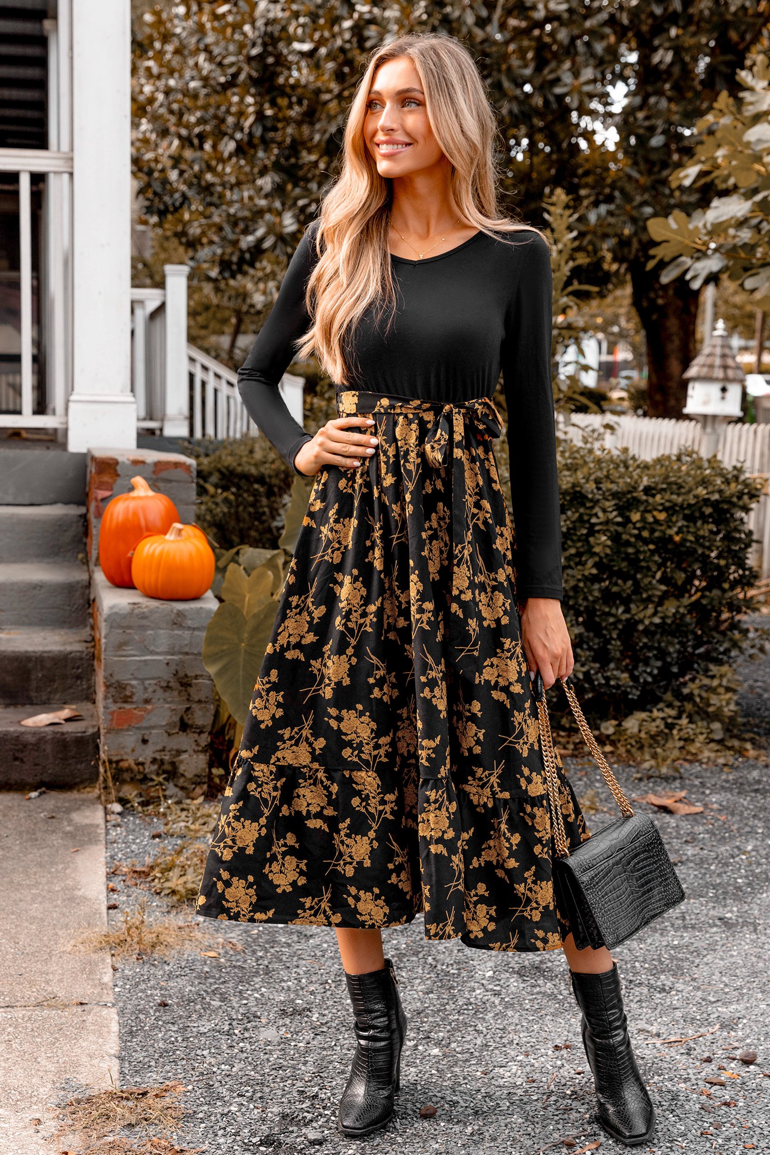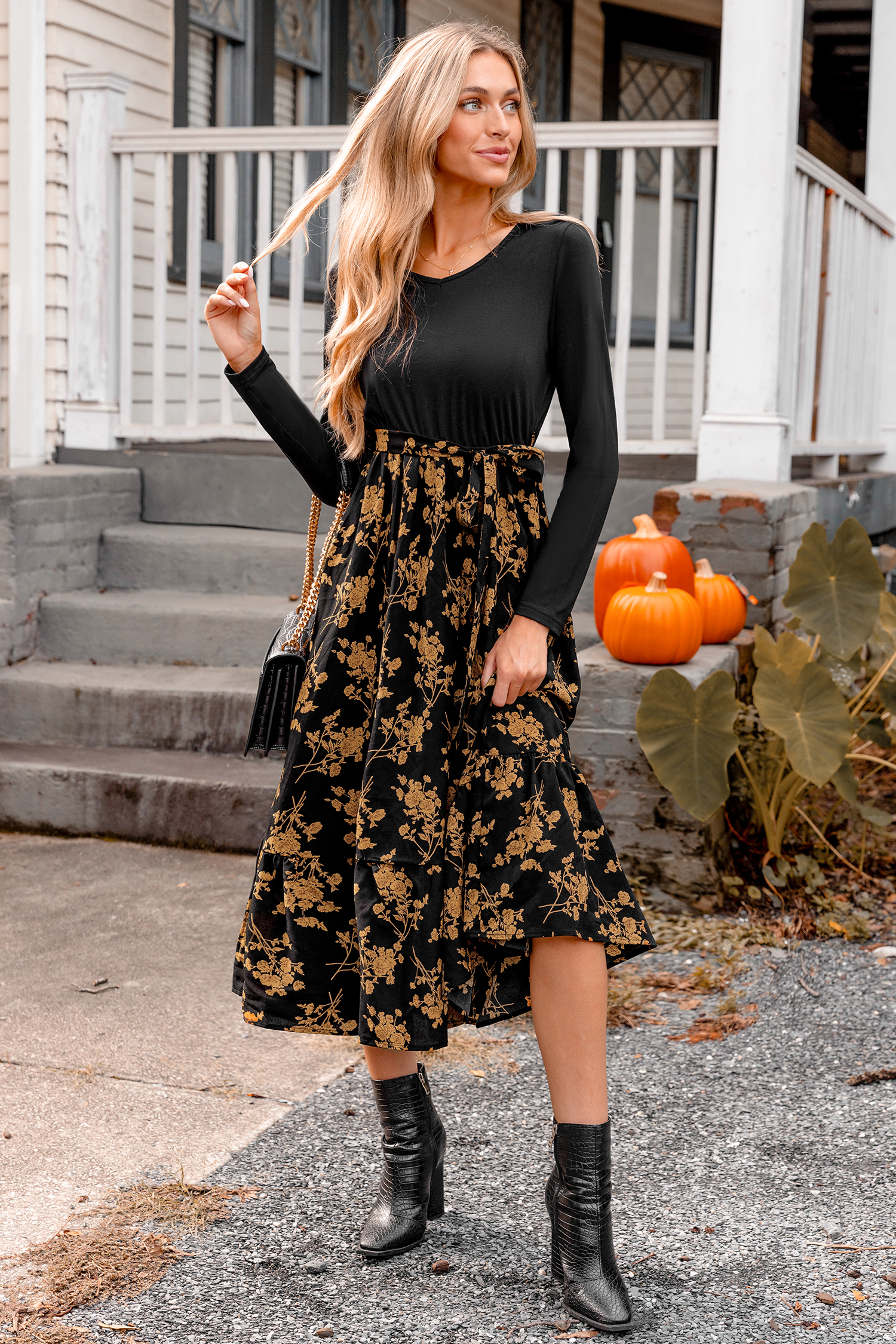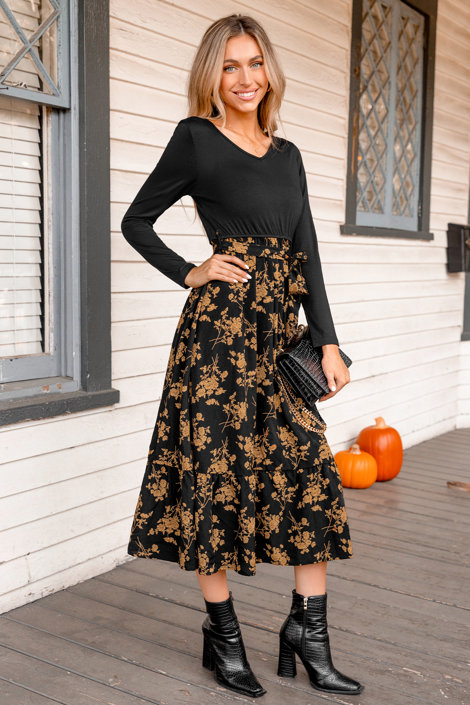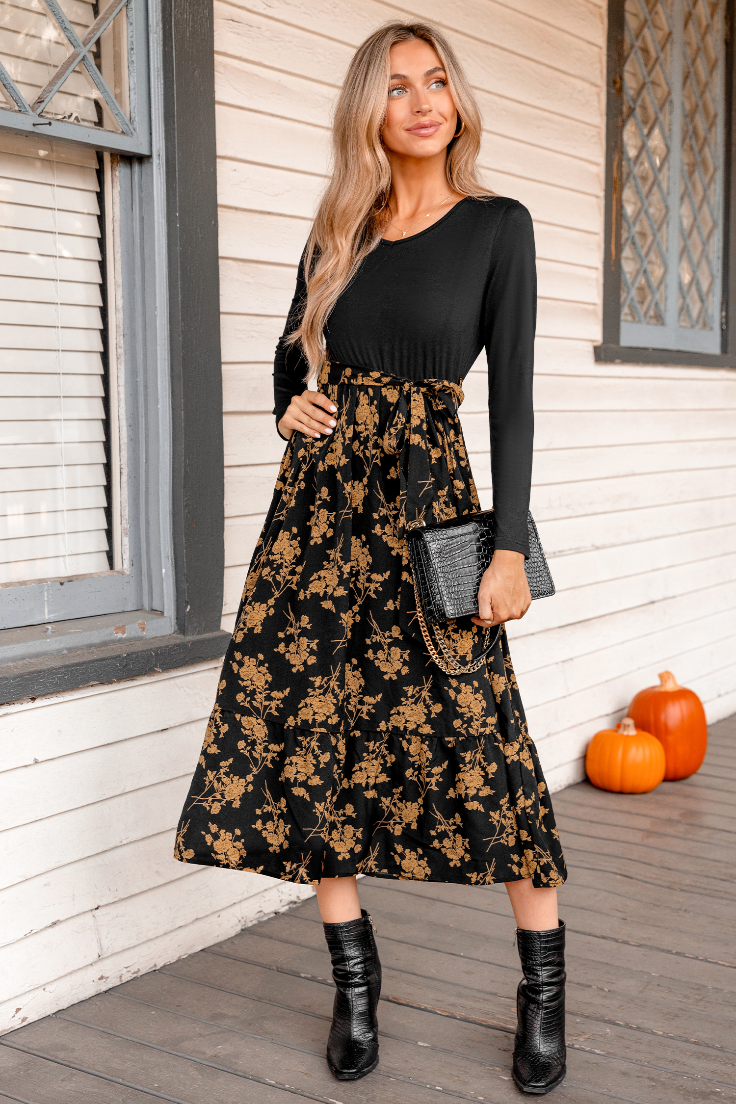 HomeBelted Floral Print Long Sleeve Maxi Dress