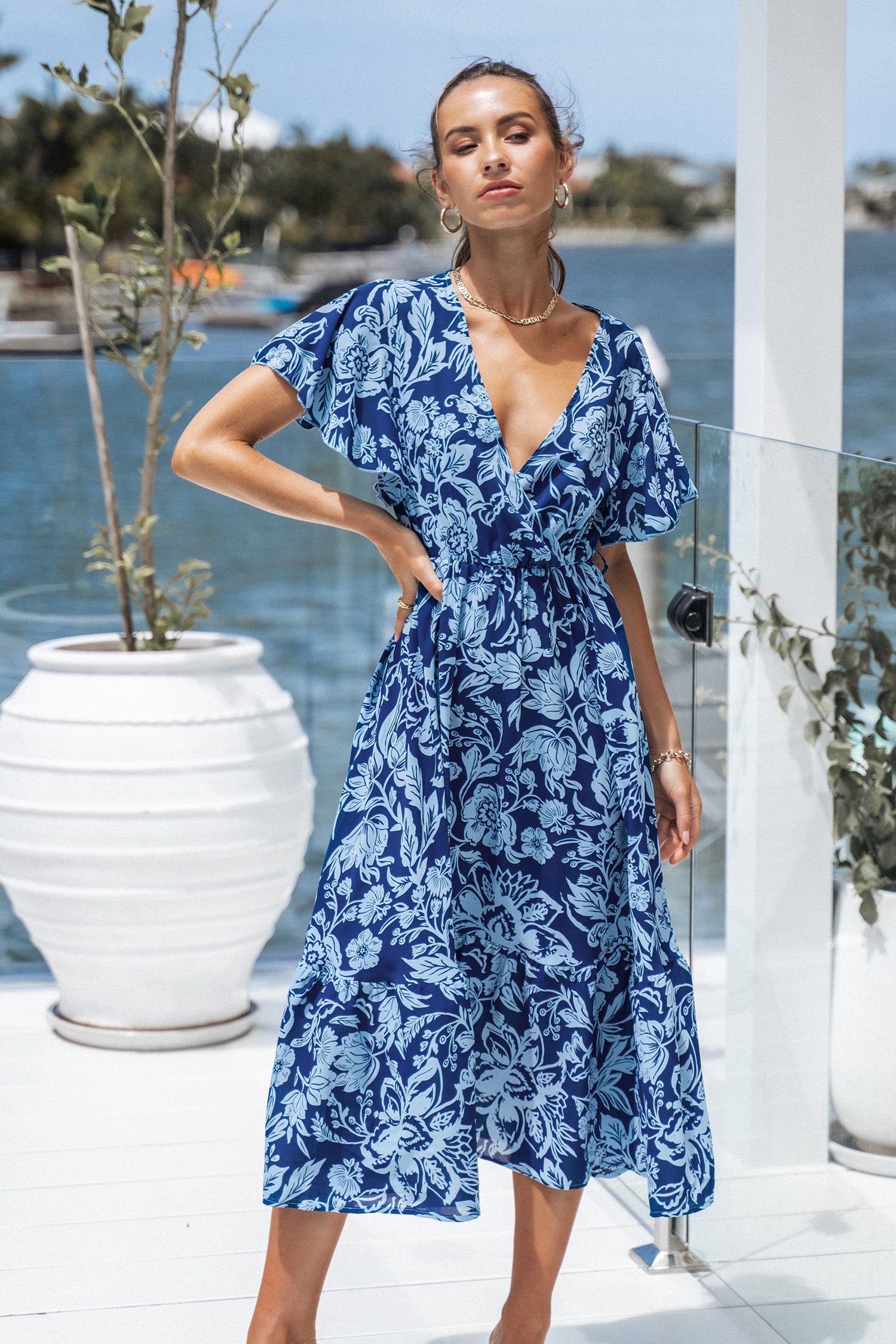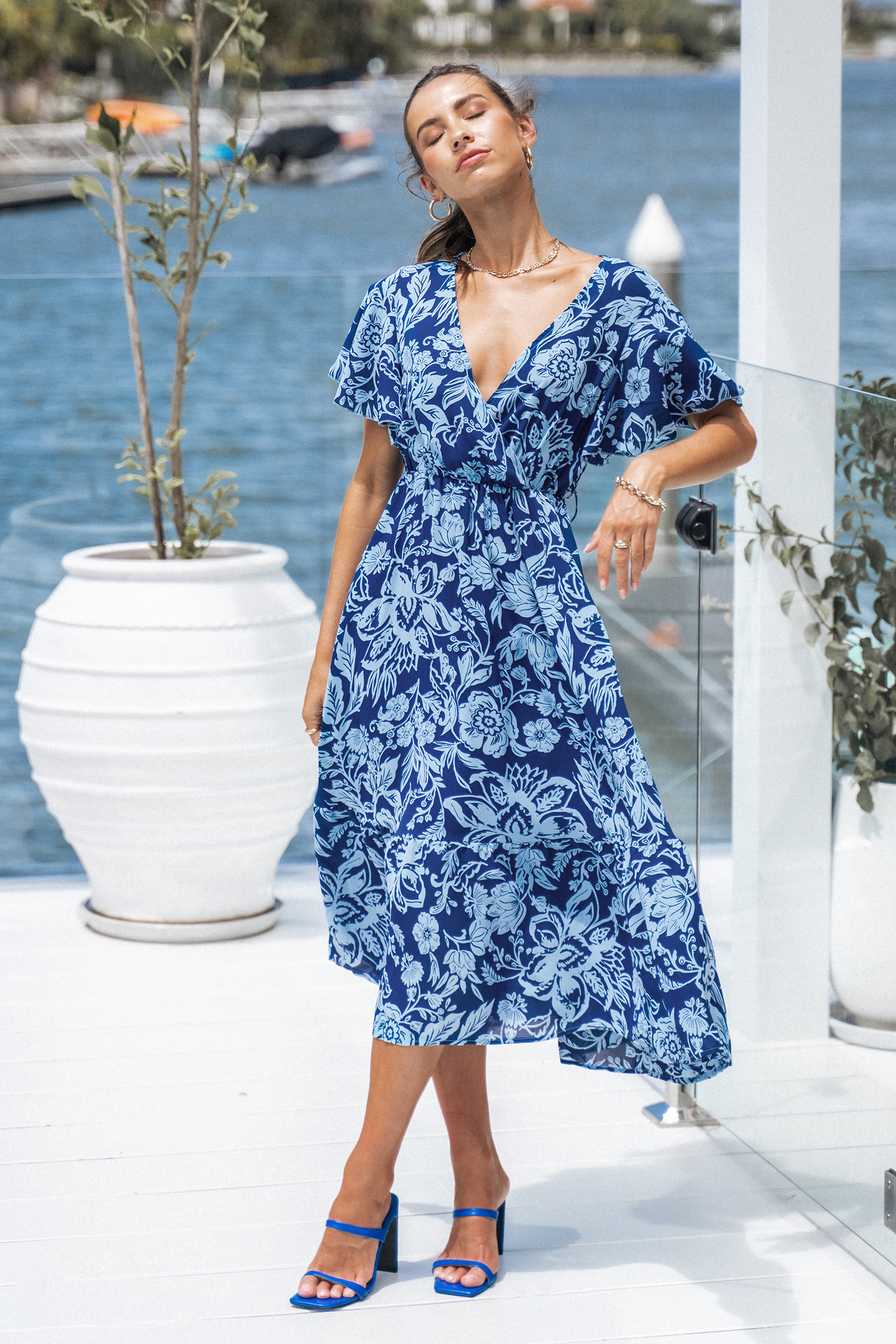 Belted Floral Print Midi Dress