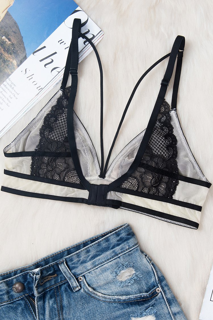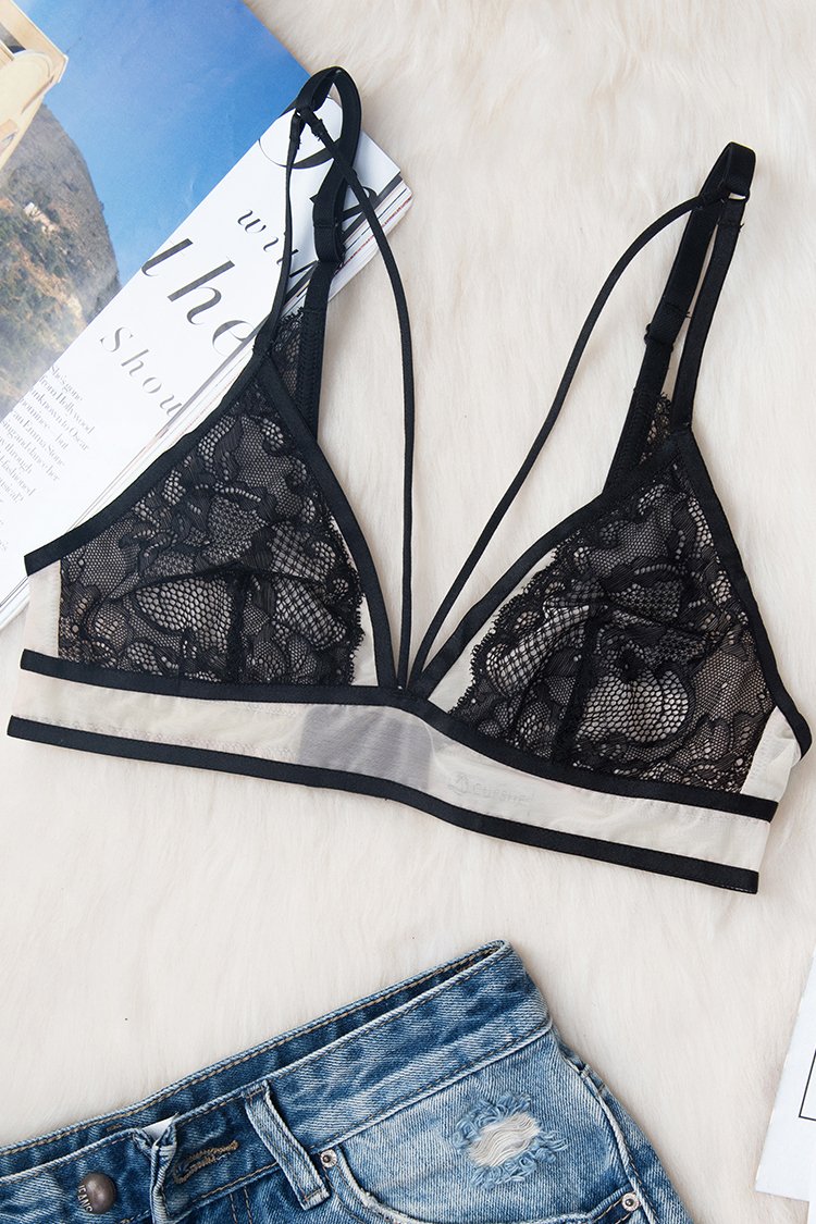 Black And Nude Lace Bralette