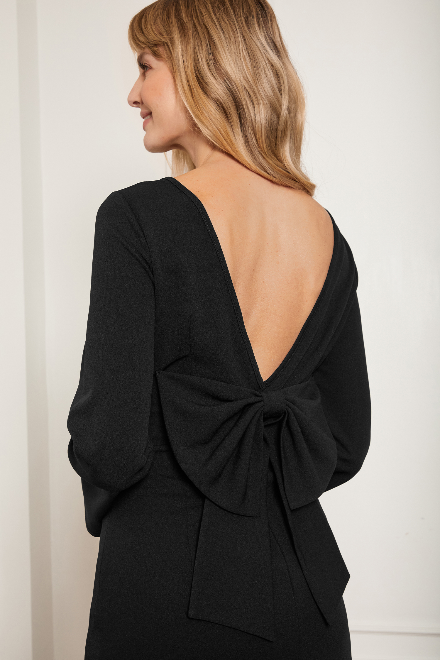HomeBlack Boatneck Long Flared Sleeve Mini Dress