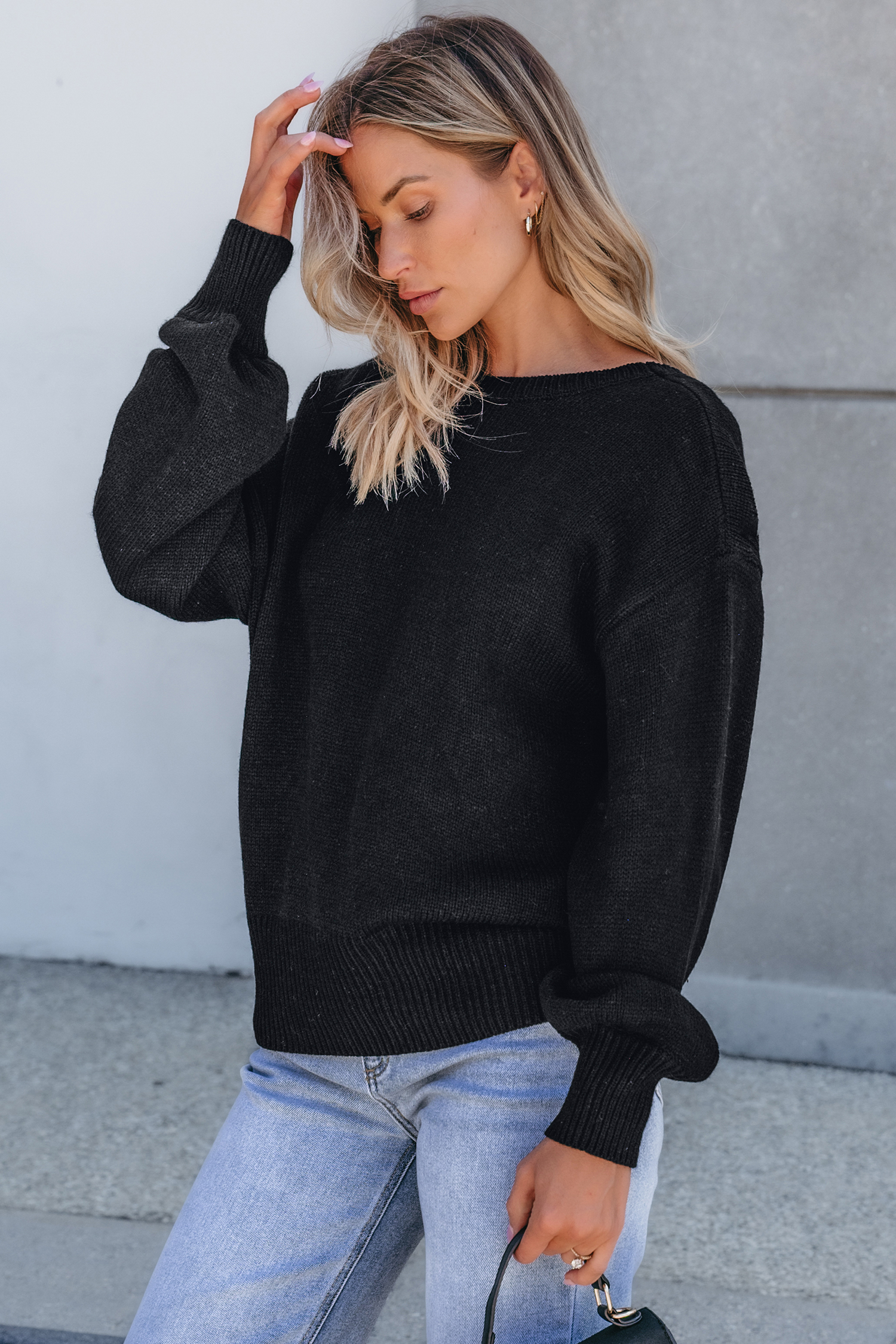 Black Boatneck Long Sleeve Open Back Sweater