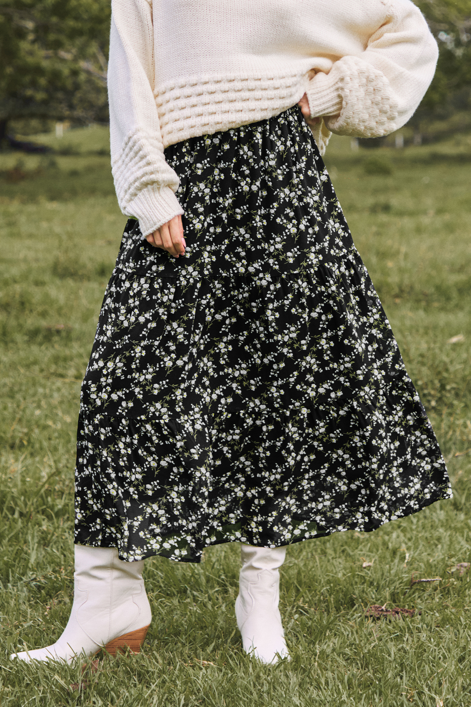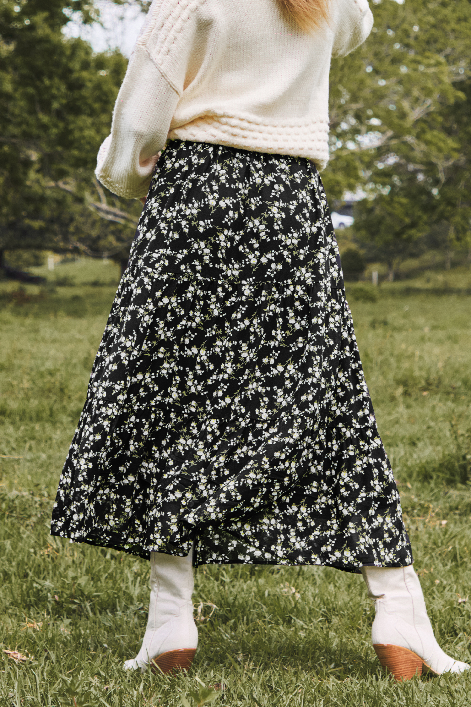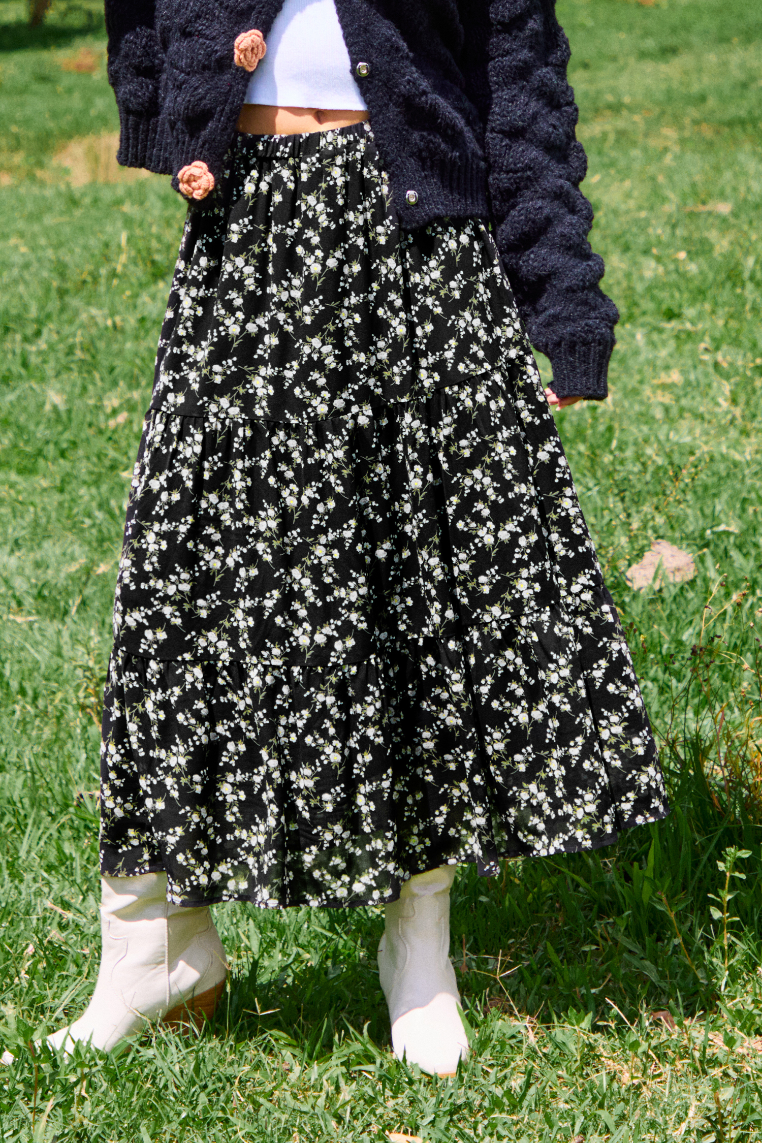 Black Ditsy Midi Skirt
