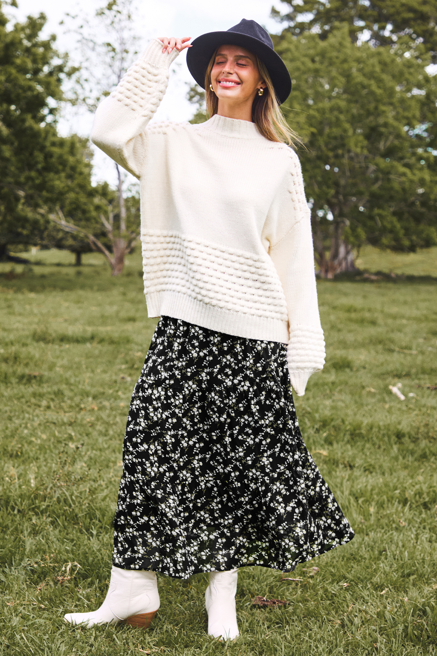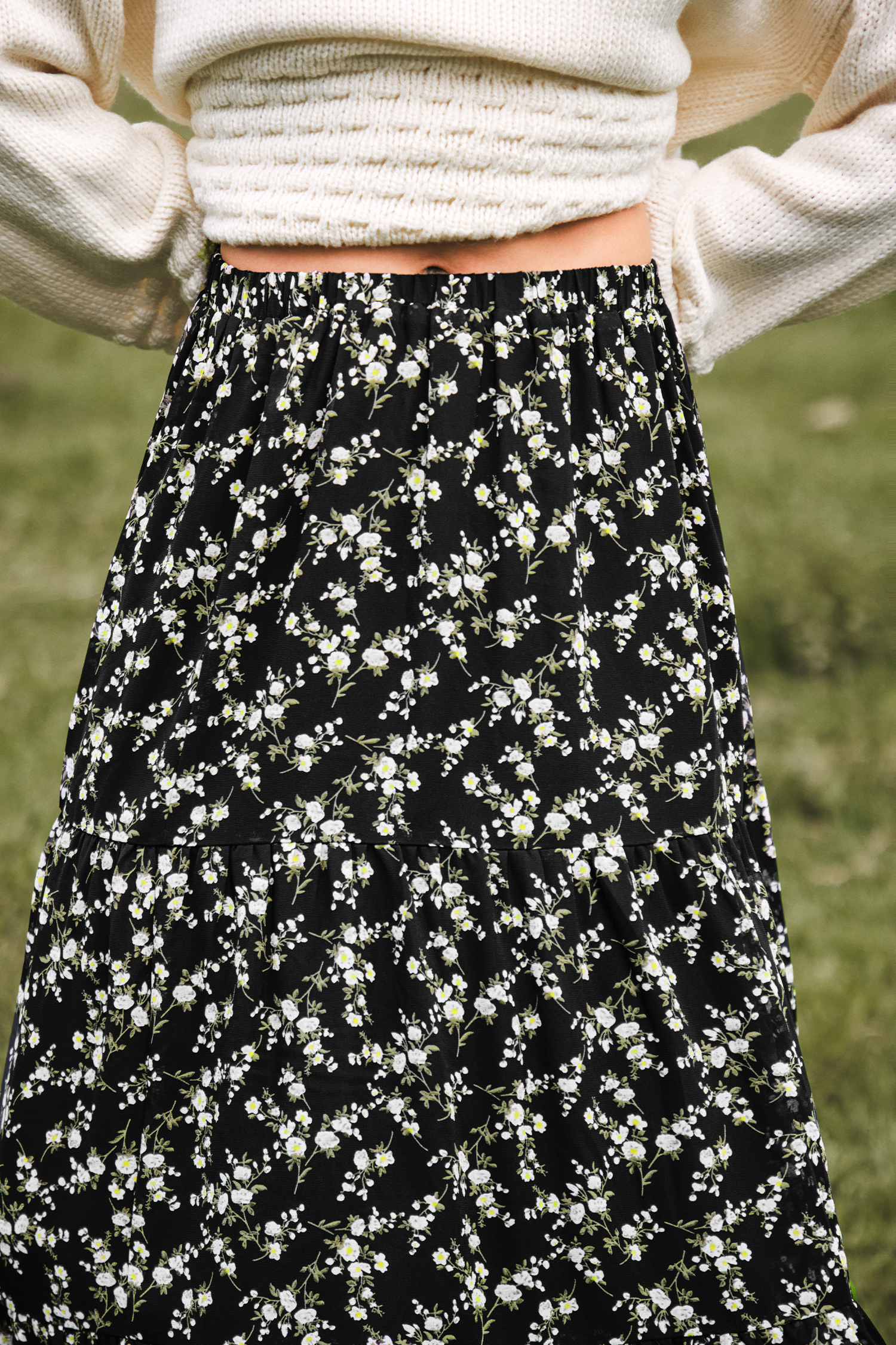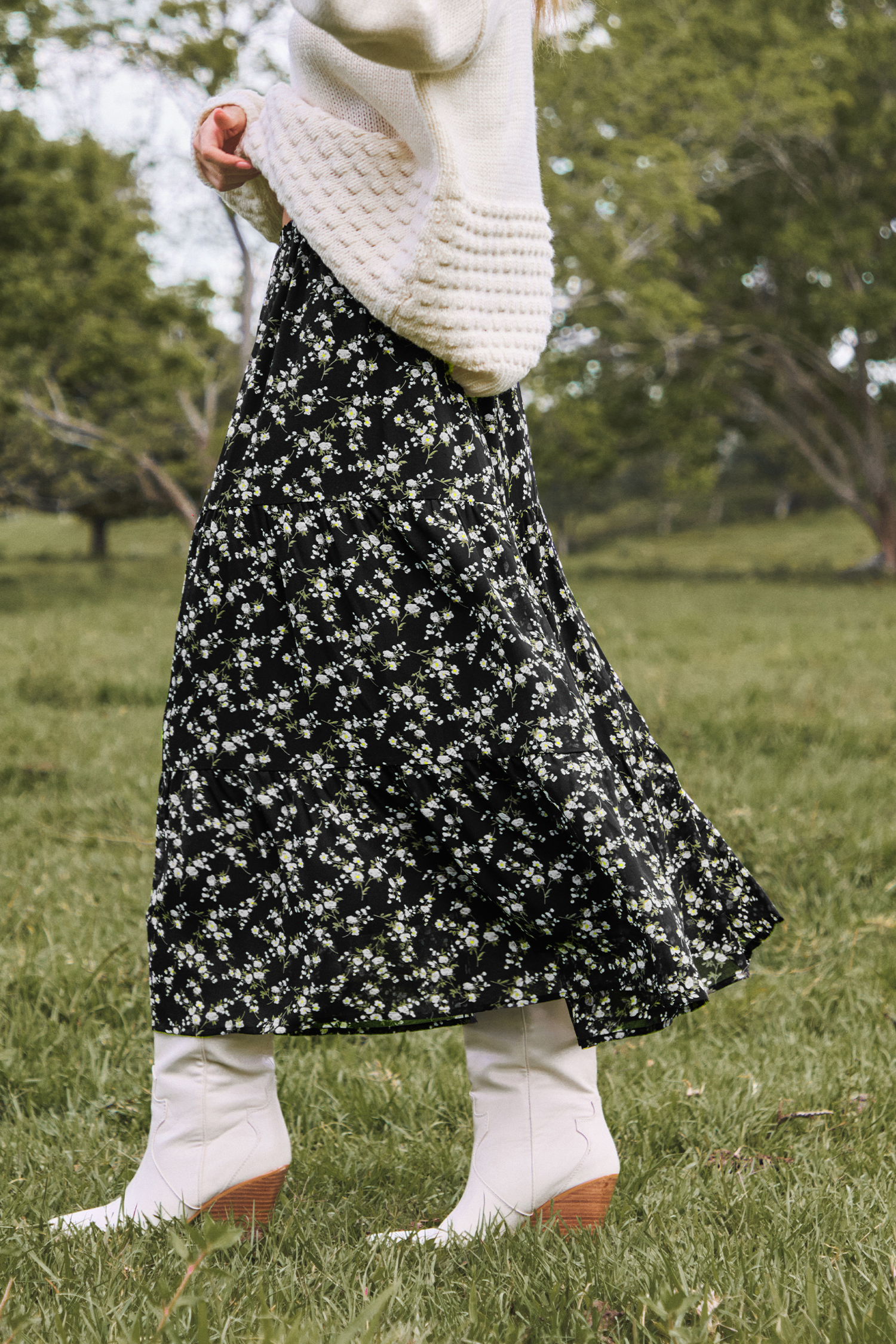 Black Ditsy Midi Skirt