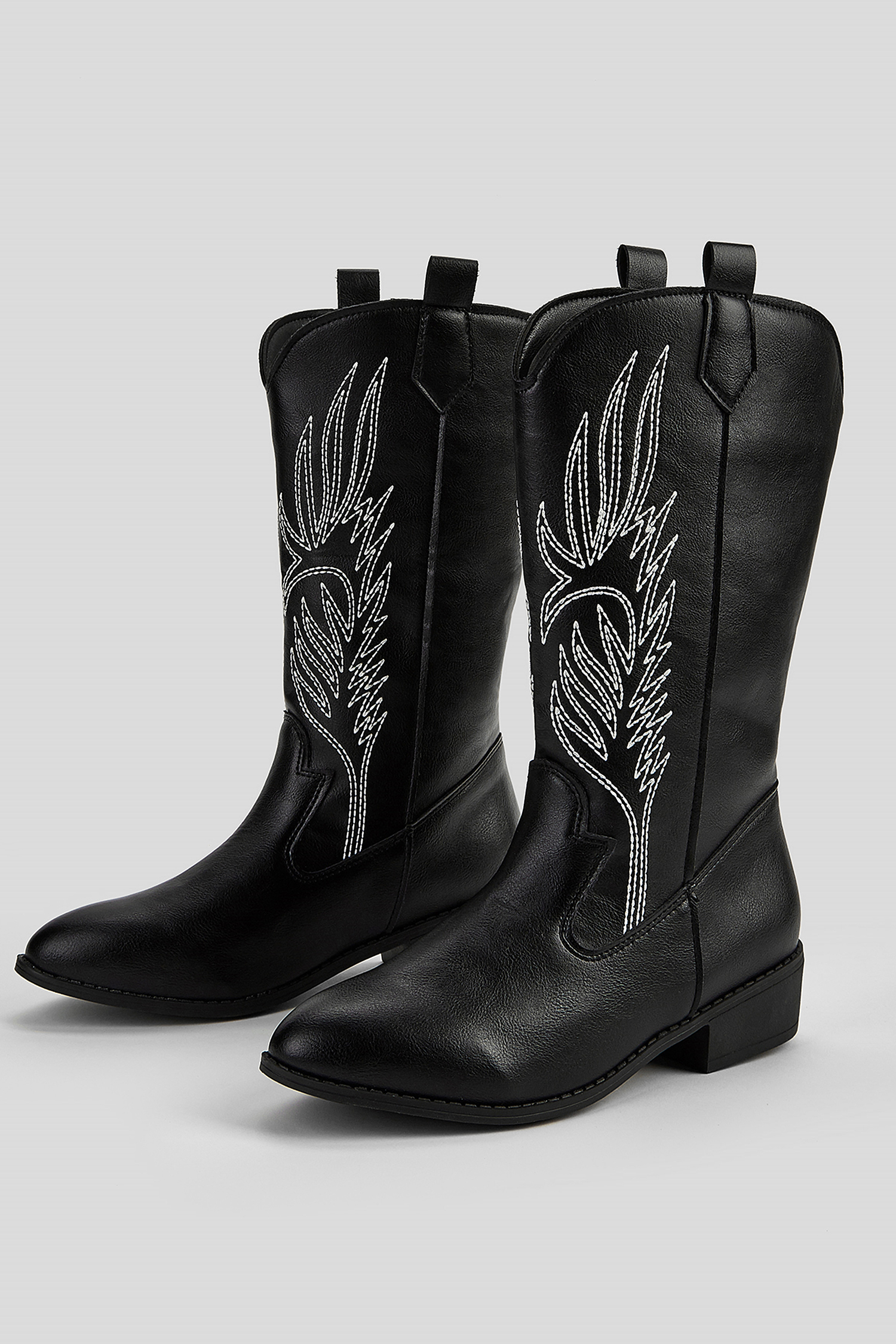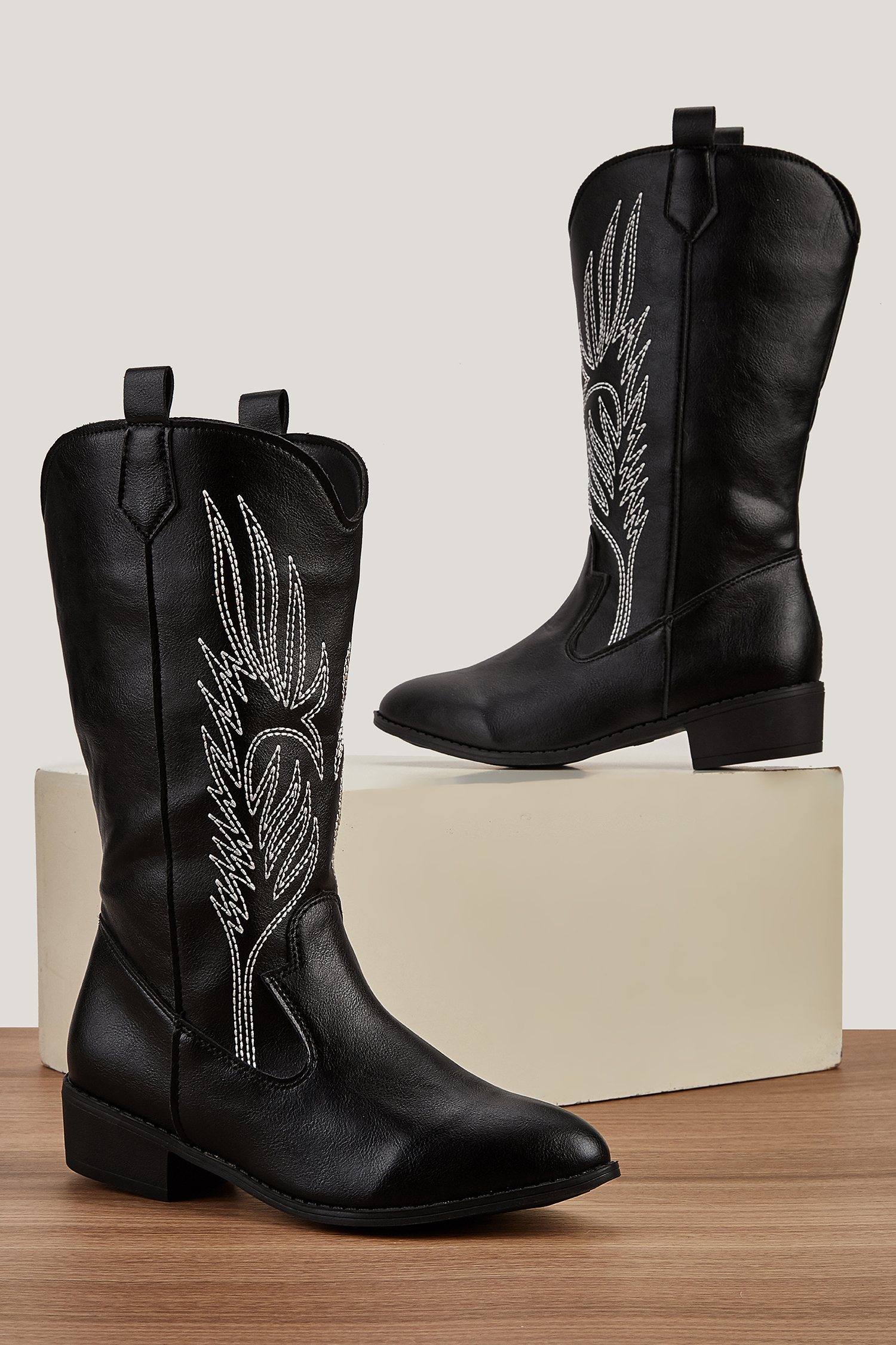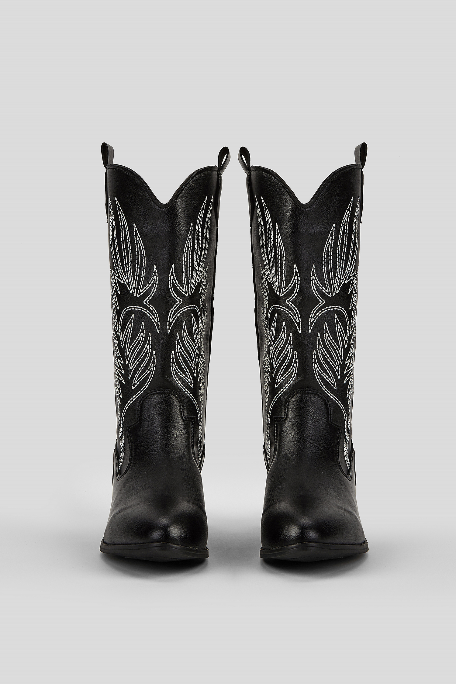 HomeBlack Faux Leather Contrast Stitch Cowboy Boots