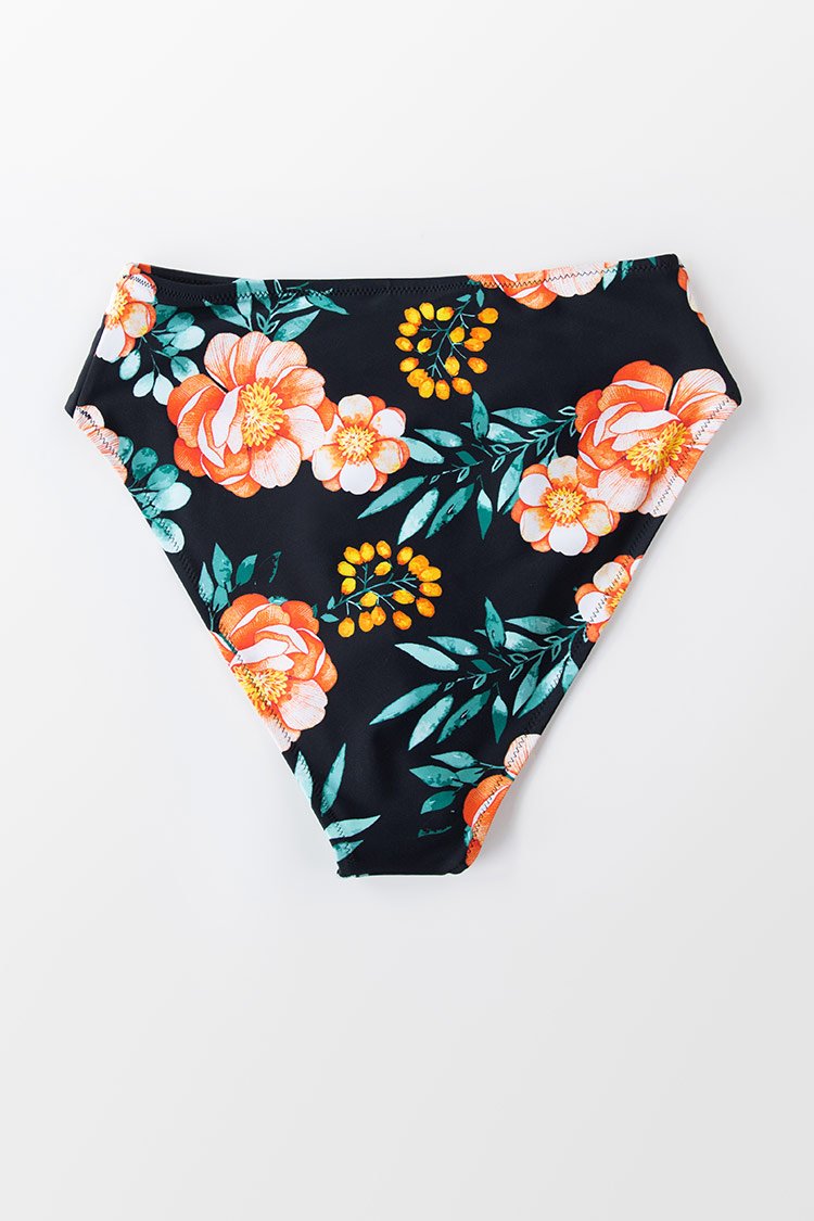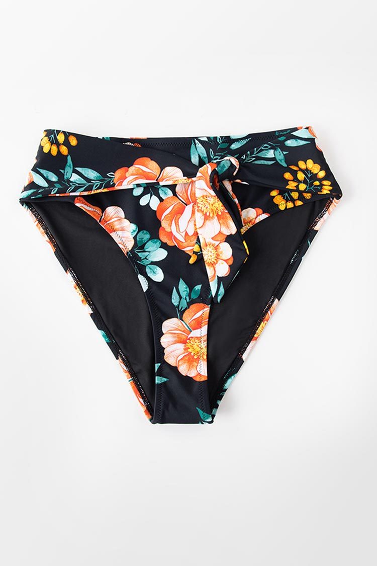 HomeBlack Floral Tie Mid Rise Bikini Bottom