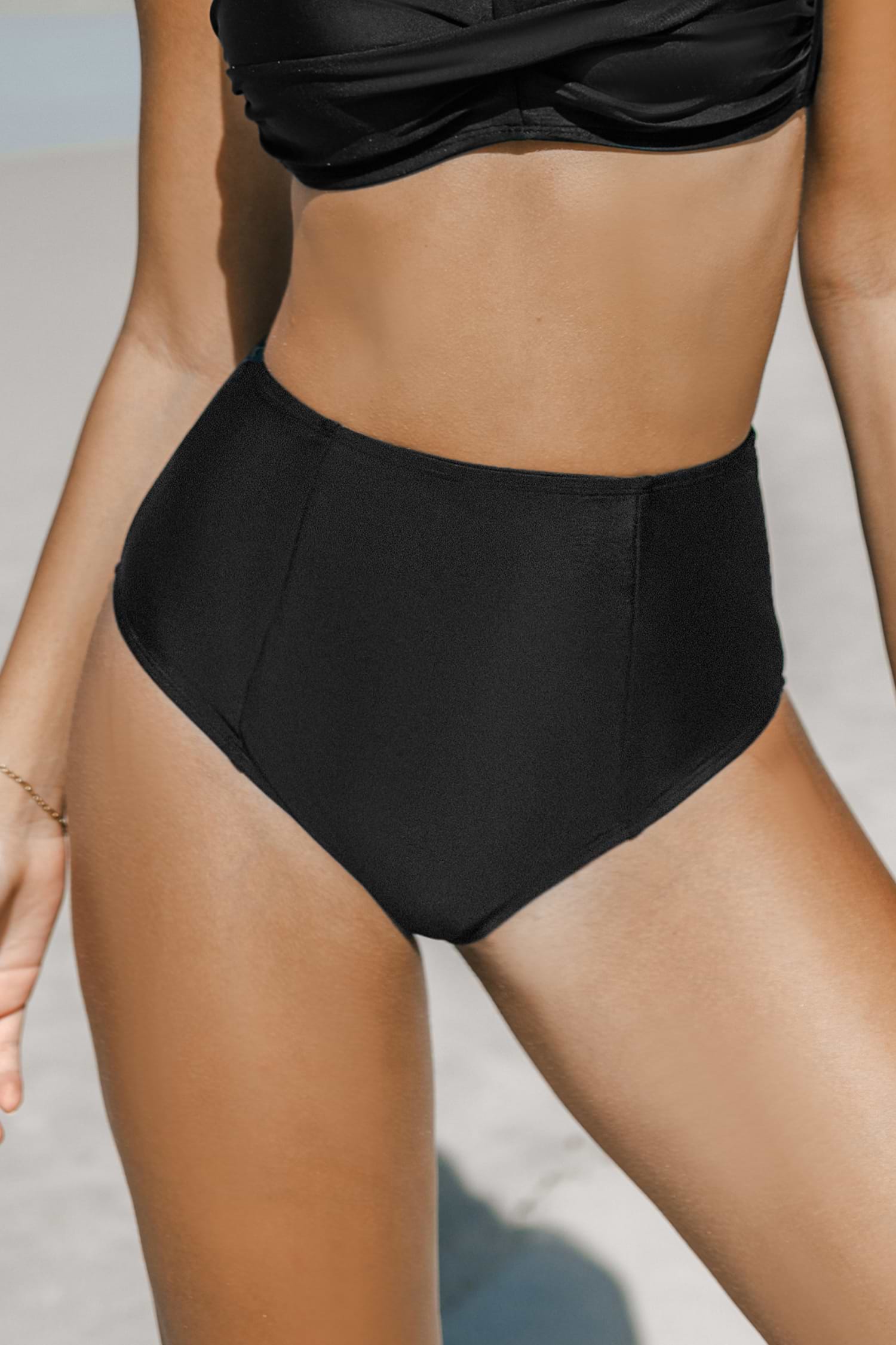 Black High-Rise Retro Full Bum Bikini Bottoms