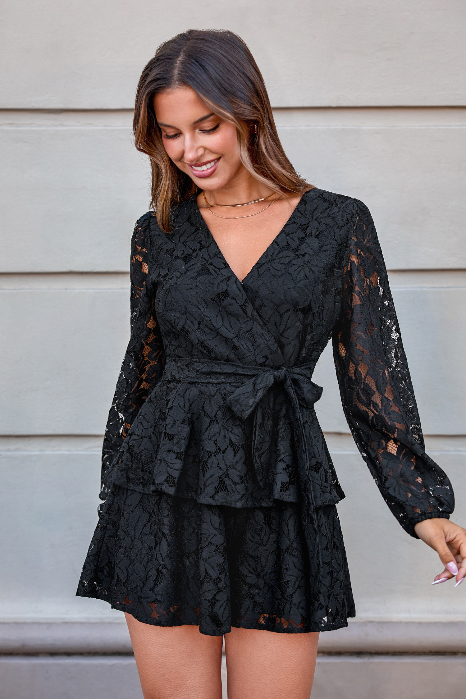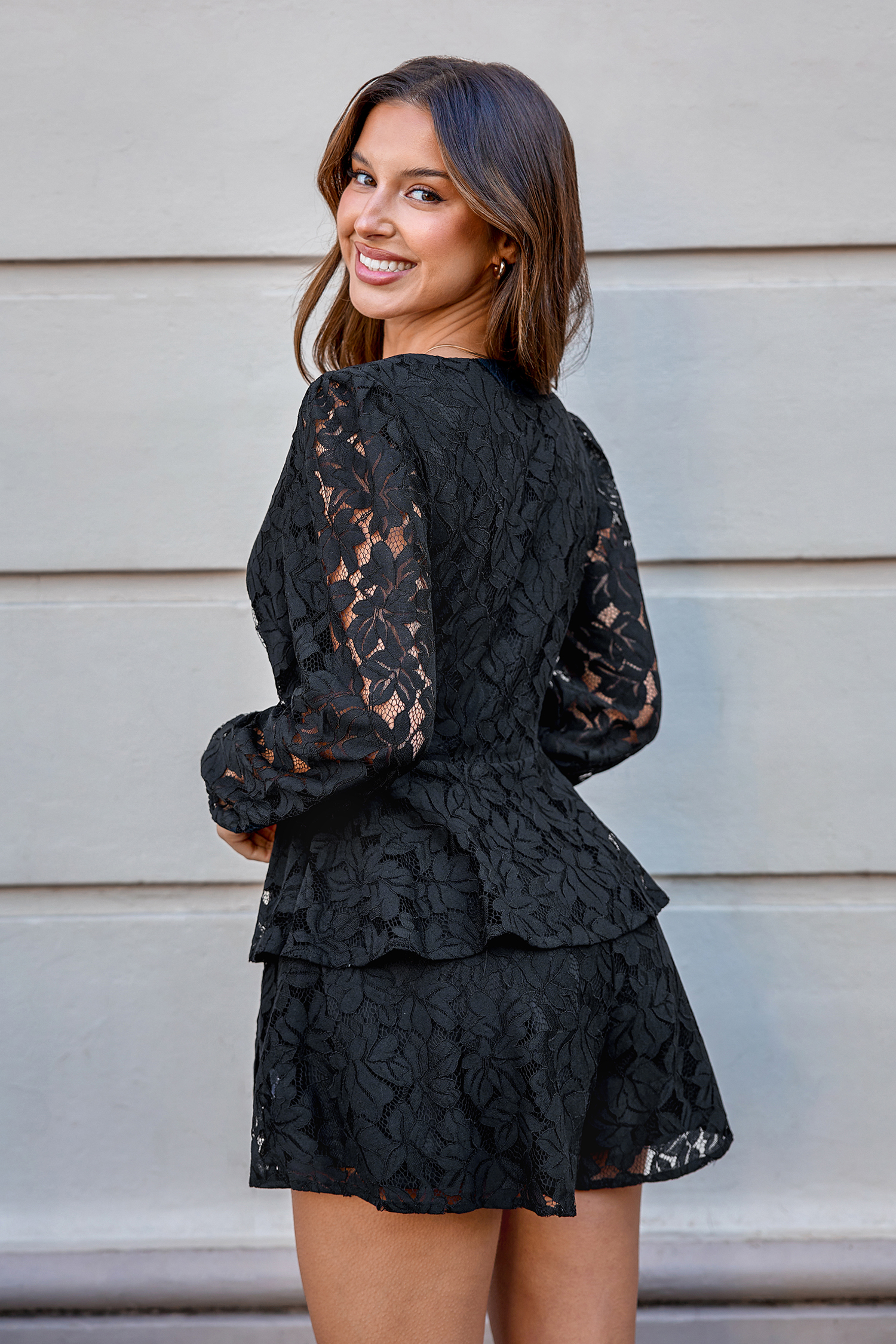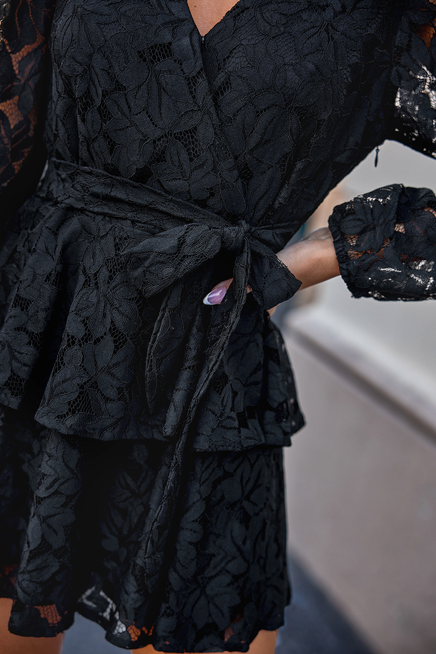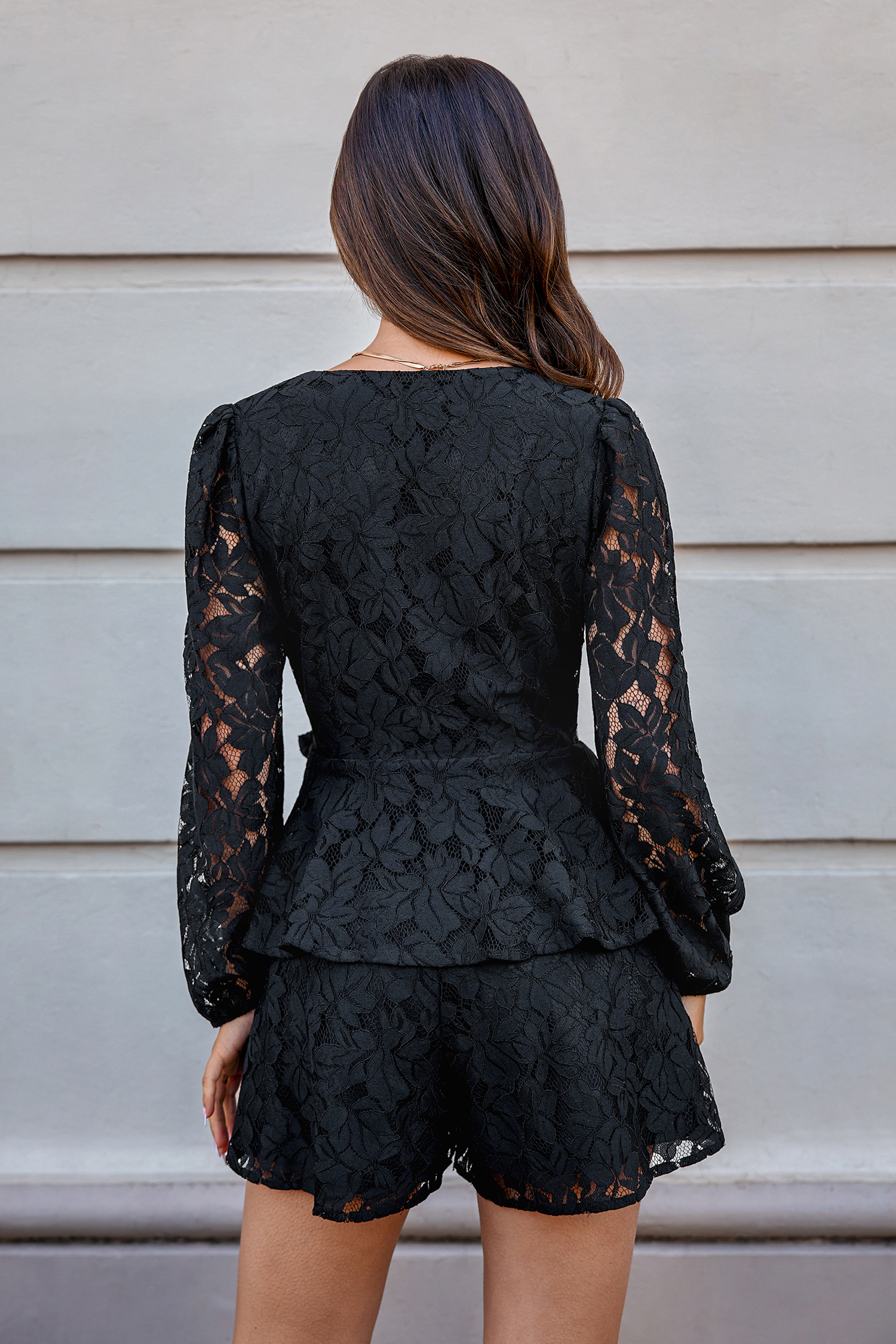 Black Lace Sleeve Flared Leg Romper