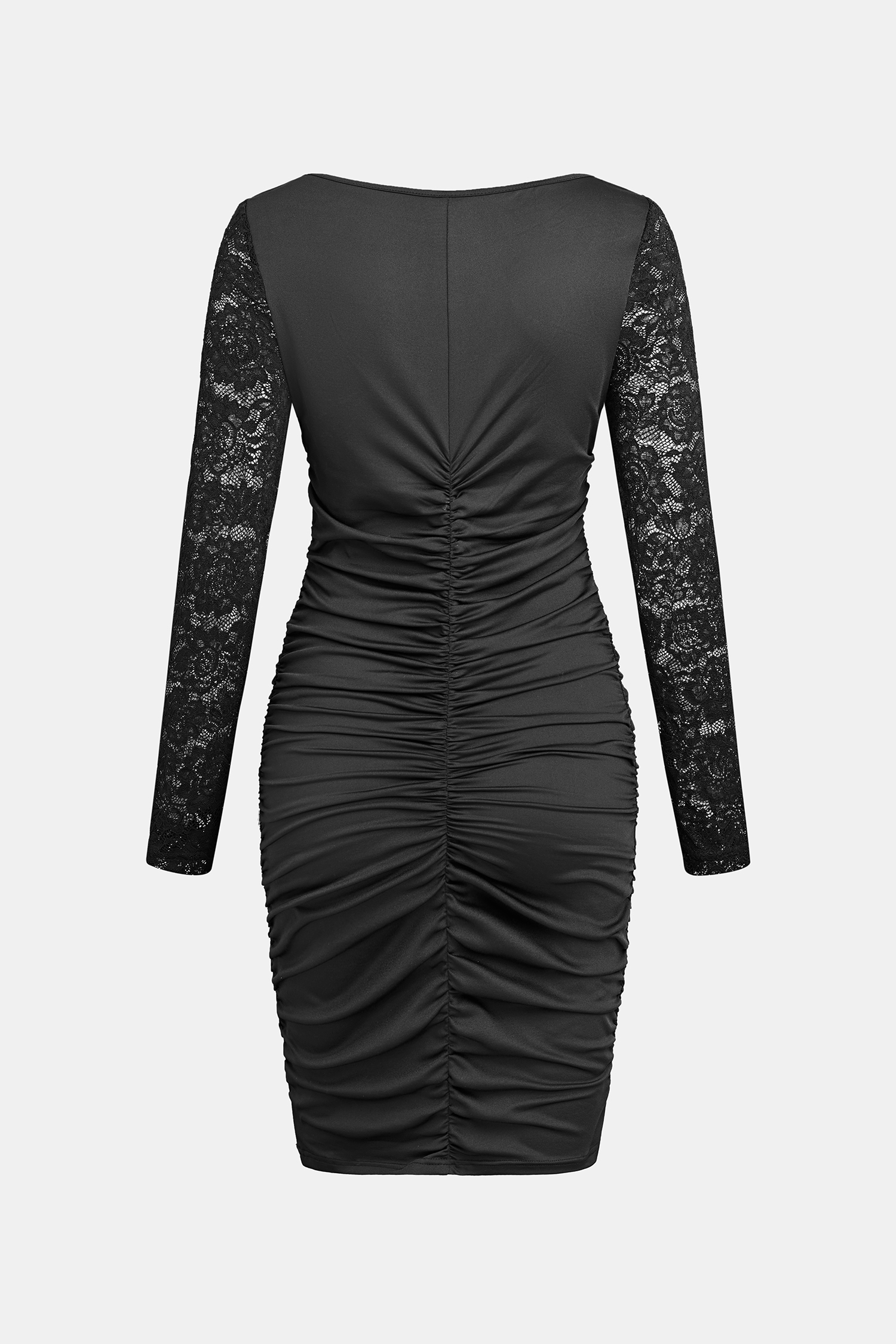HomeBlack Lace Sleeve V-Neck Ruched Dress