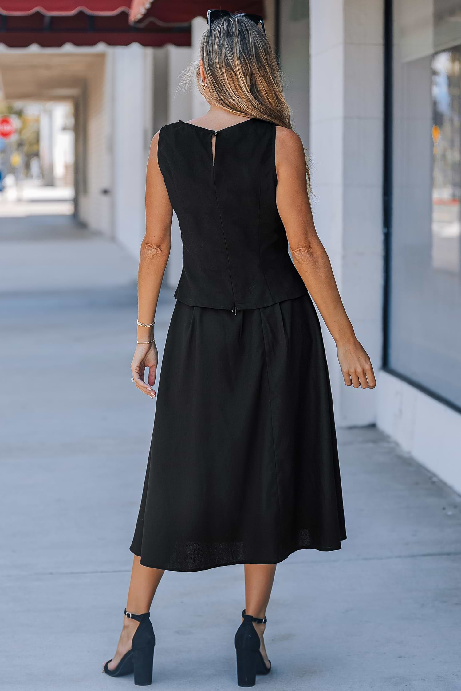 Black Sleeveless Boatneck Top & Midi Skirt Set