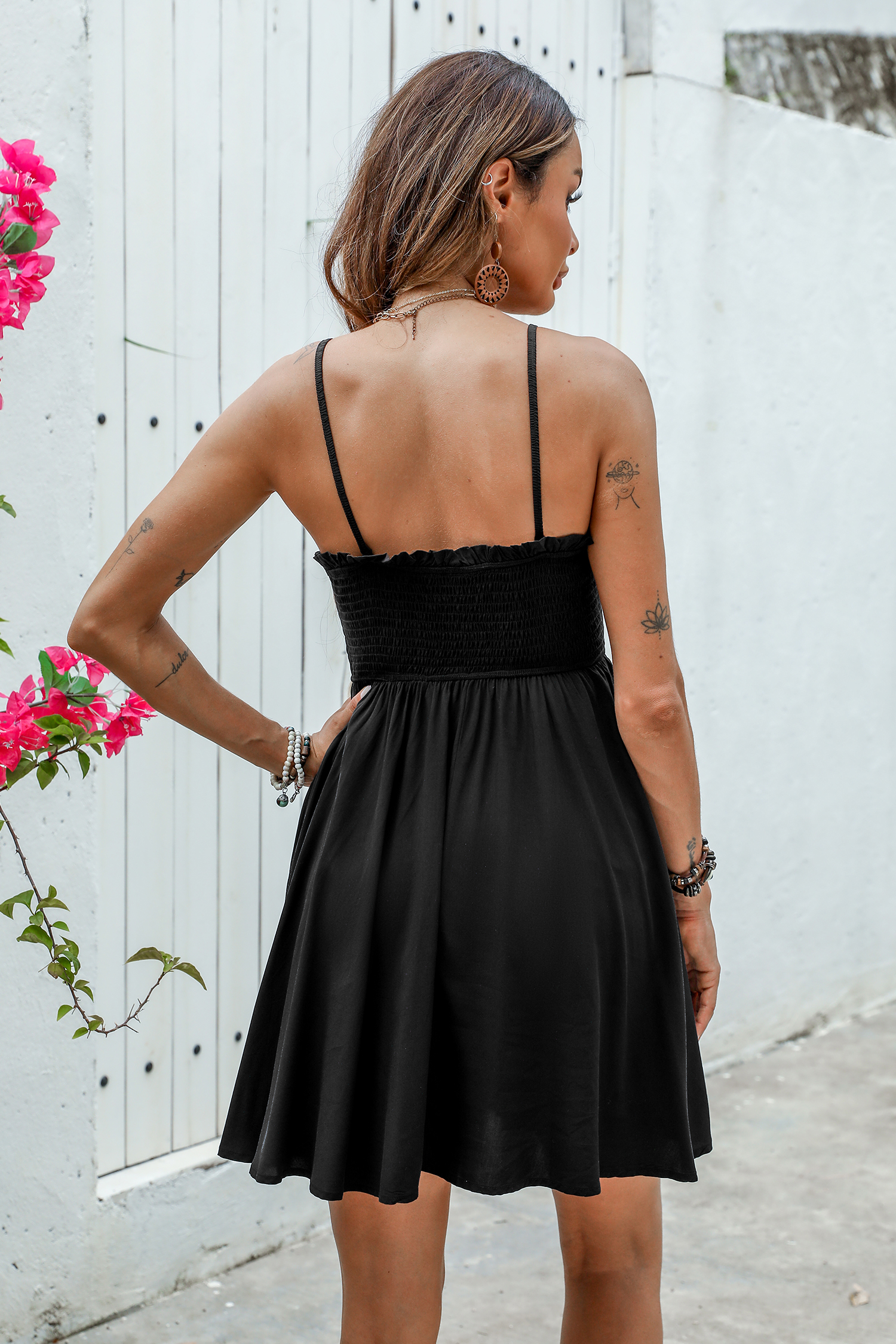 • Black Sleeveless Square Neck Smocked Mini Dress