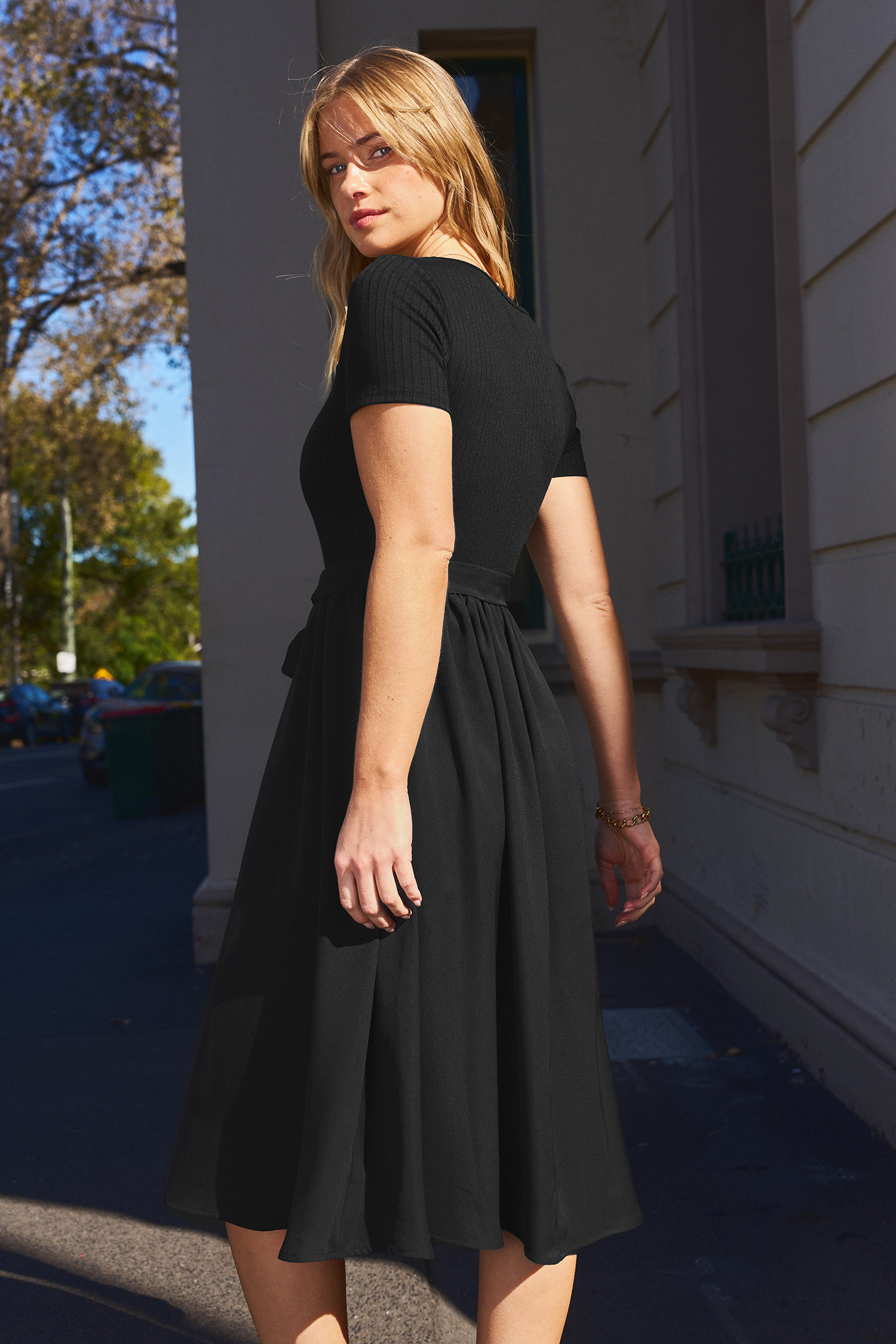 HomeBlack Square Neck Short Sleeve Midi Dress