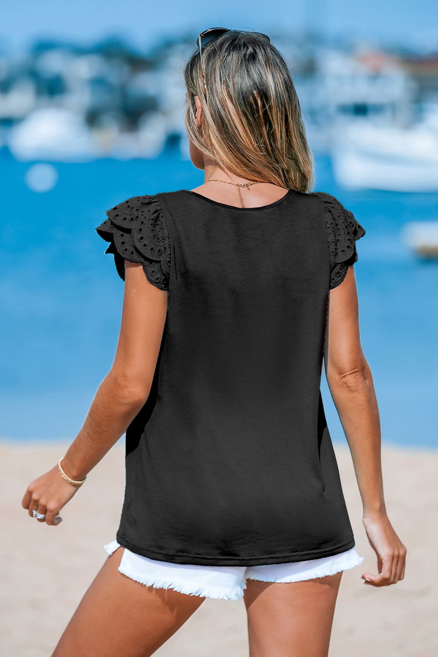 HomeBlack Square Neck Tiered Flutter Sleeve Top