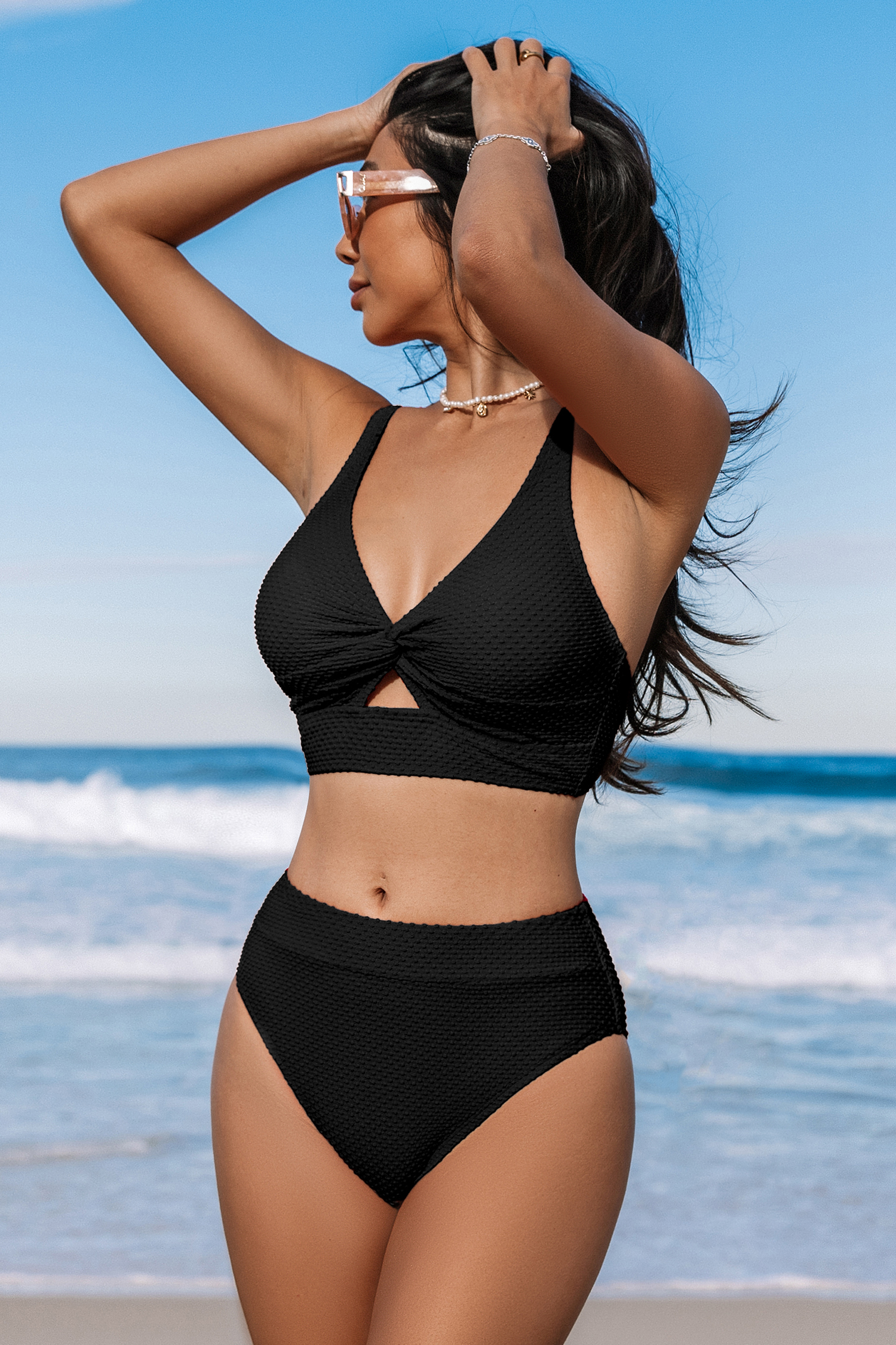Black Twist Keyhole Bikini Top & High-Rise Bottoms Set