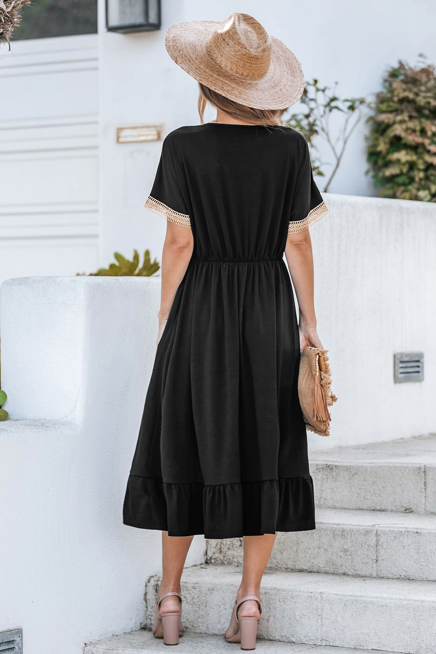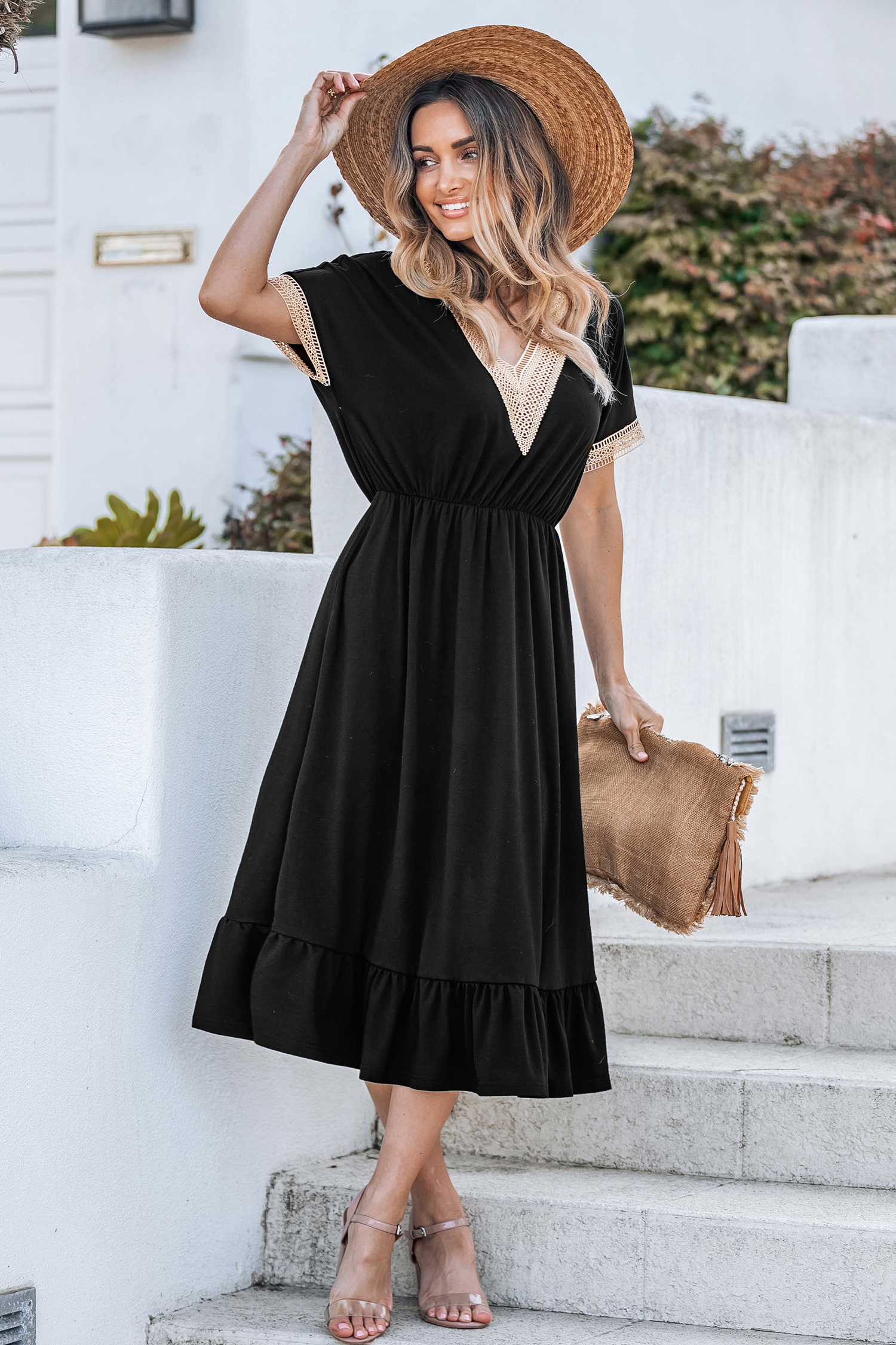 HomeBlack V-Neck Short Sleeve Mini Dress