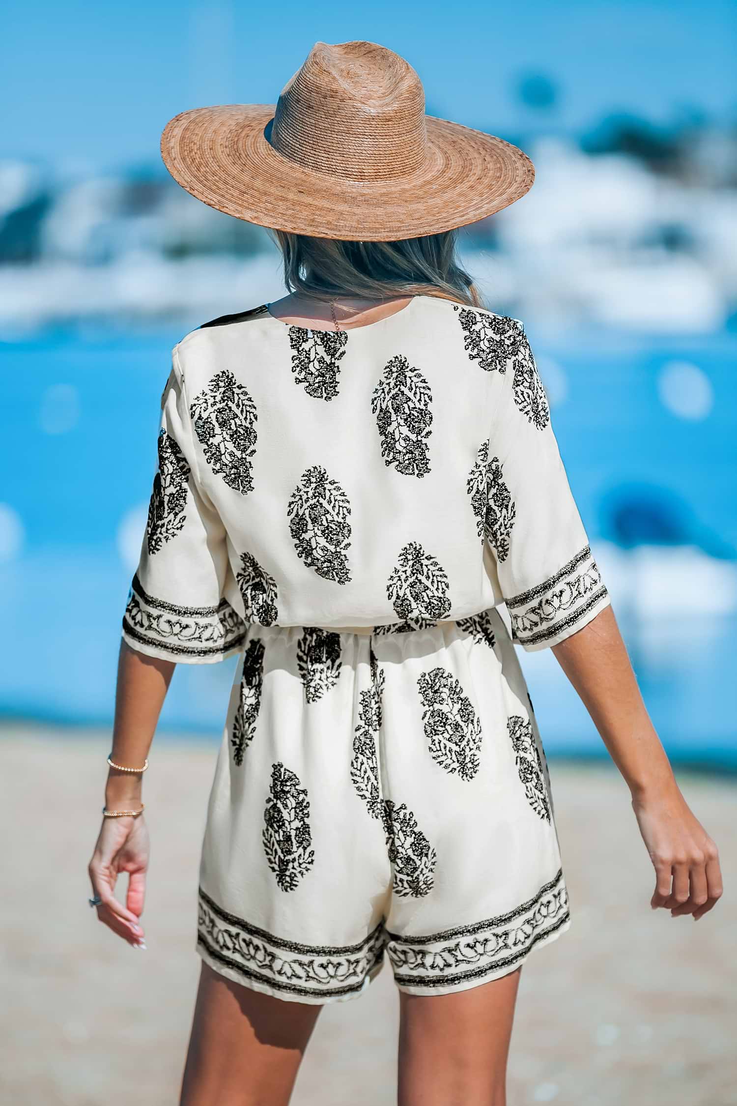 HomeBlack & White Abstract Floral Half Sleeve Romper