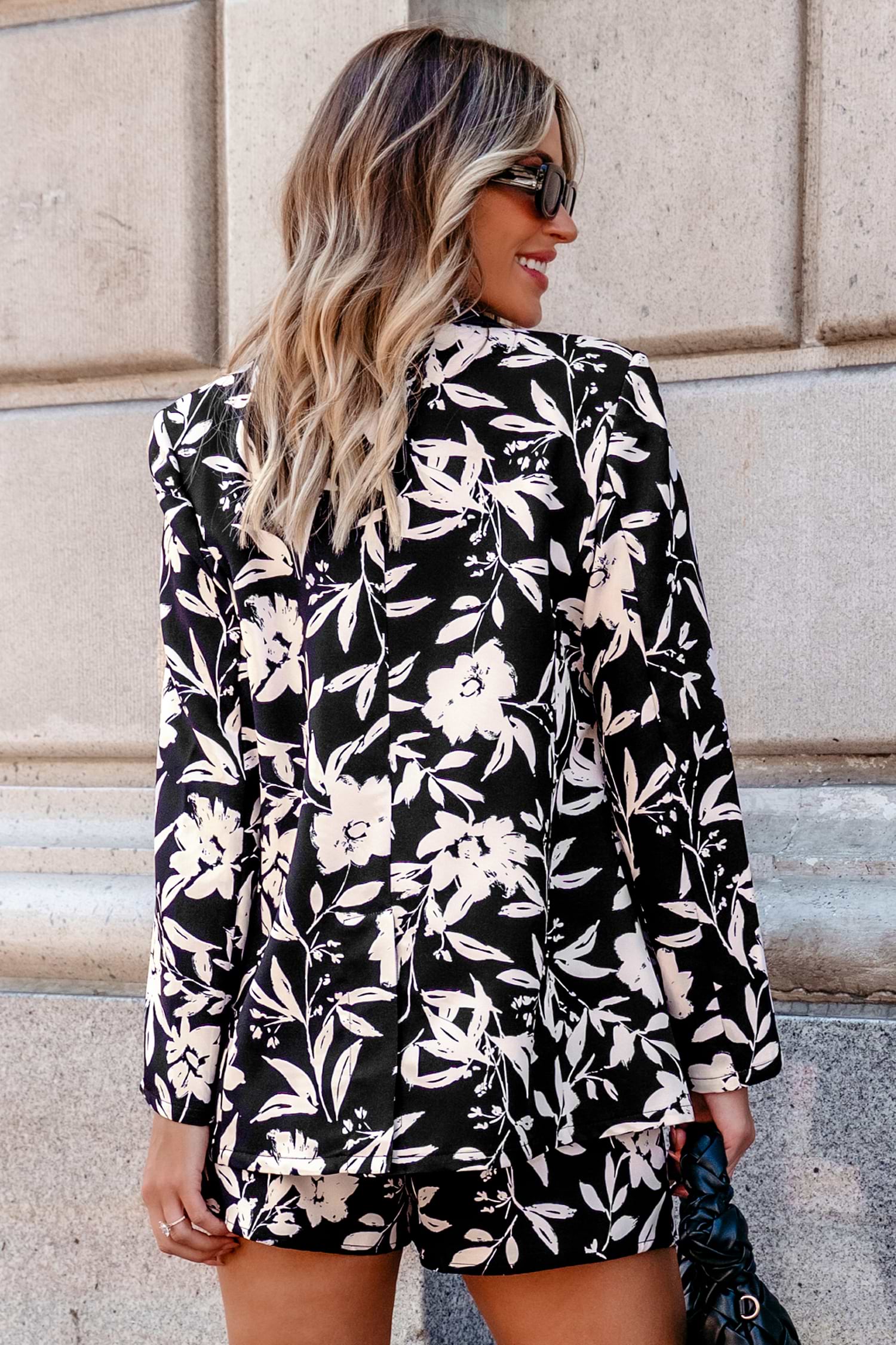 Black Floral Long Sleeve Collared Blazer