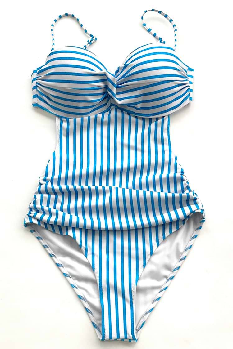Blue And White Stripe One-piece Swimsuit
