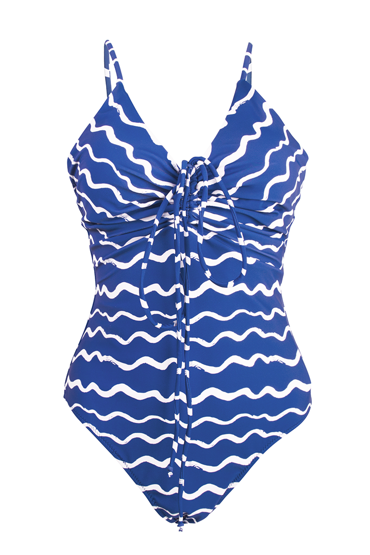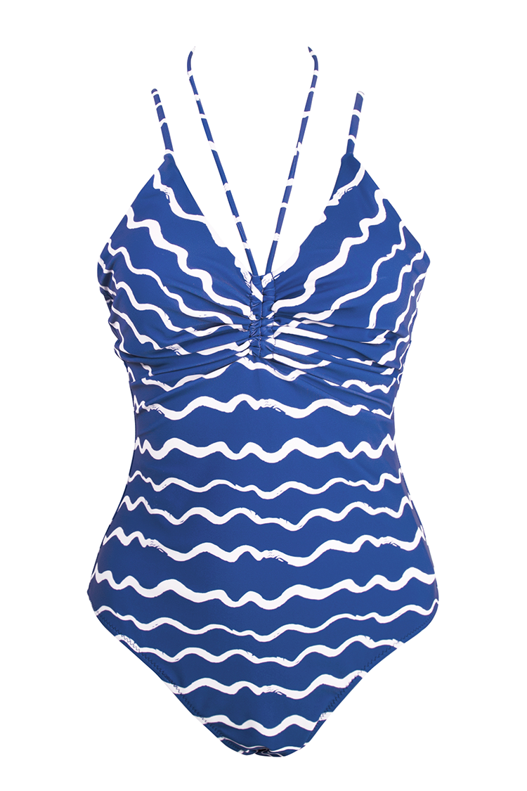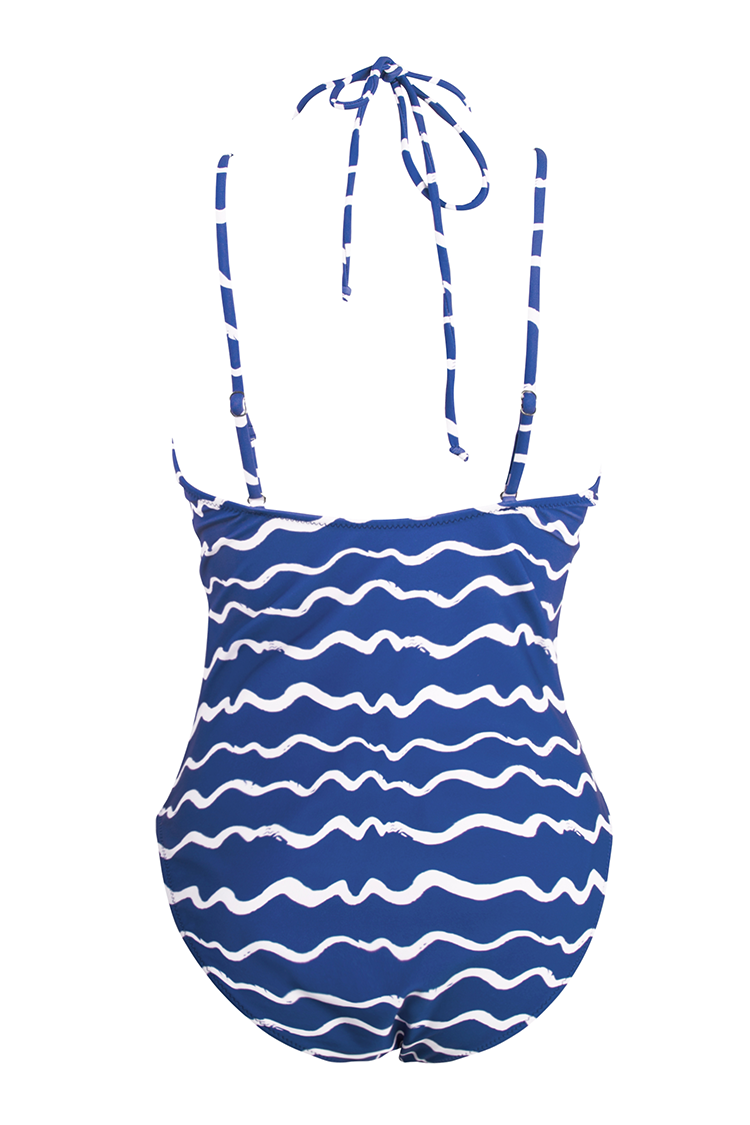 HomeBlue and White Wavy Print One-Piece Swimsuit