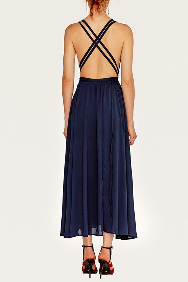 • Blue Backless Dinner Party Dress