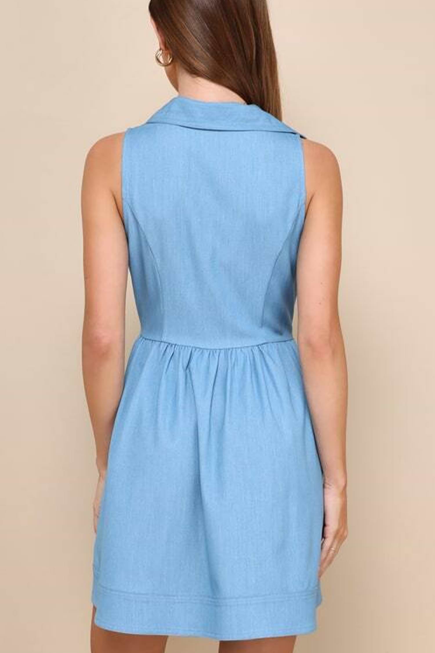 HomeBlue Collared Sleeveless Front Button Mini Dress