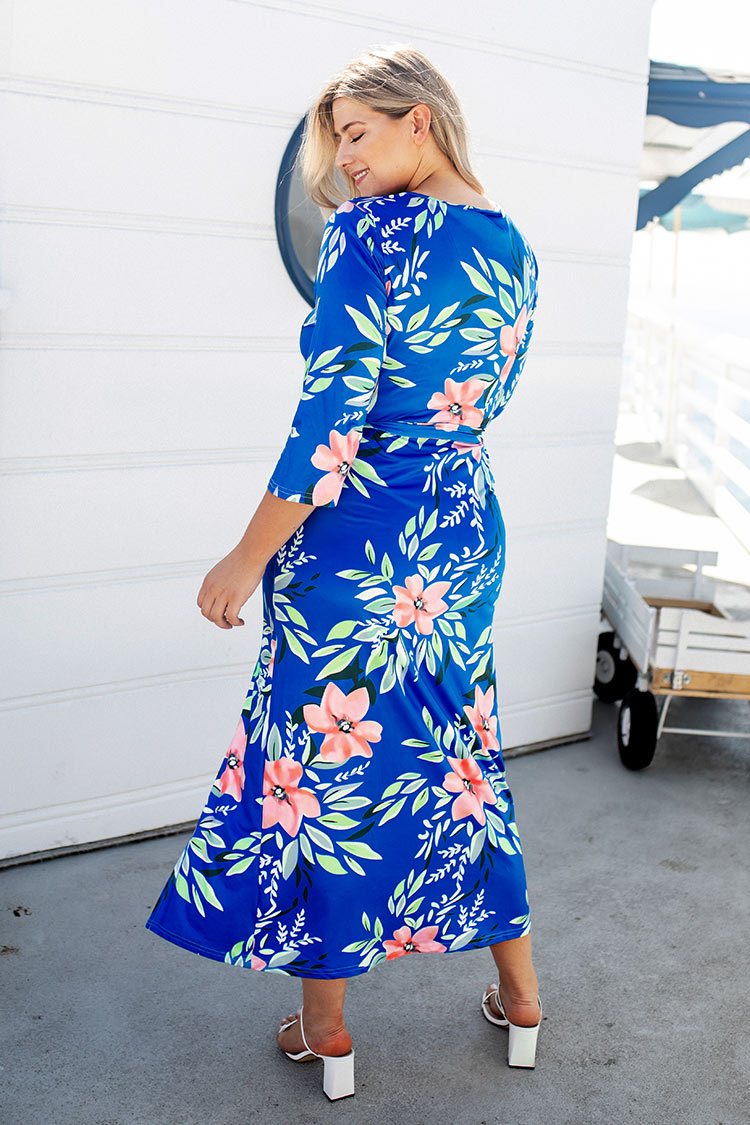 HomeBlue Floral Wrap Plus Size Dress