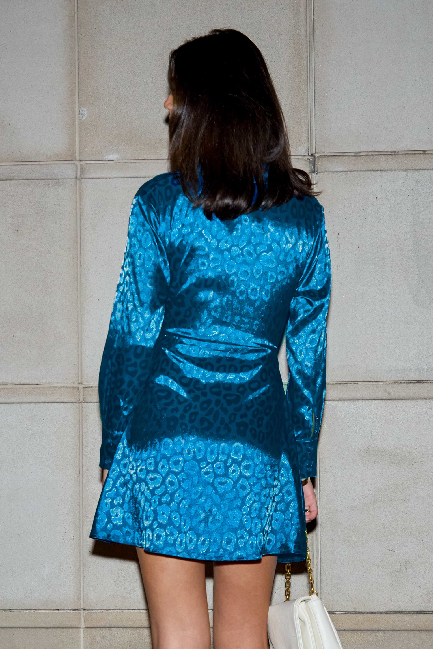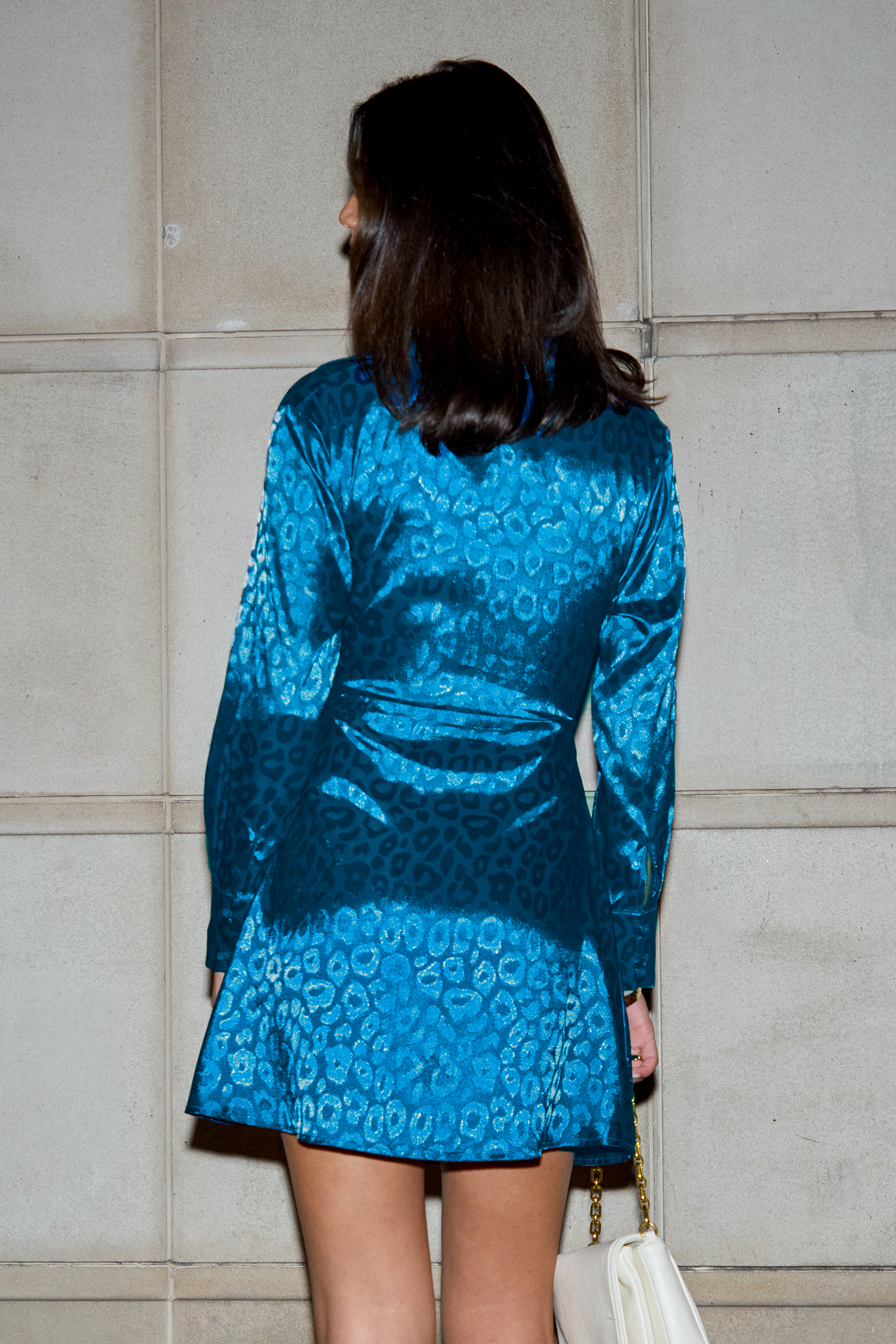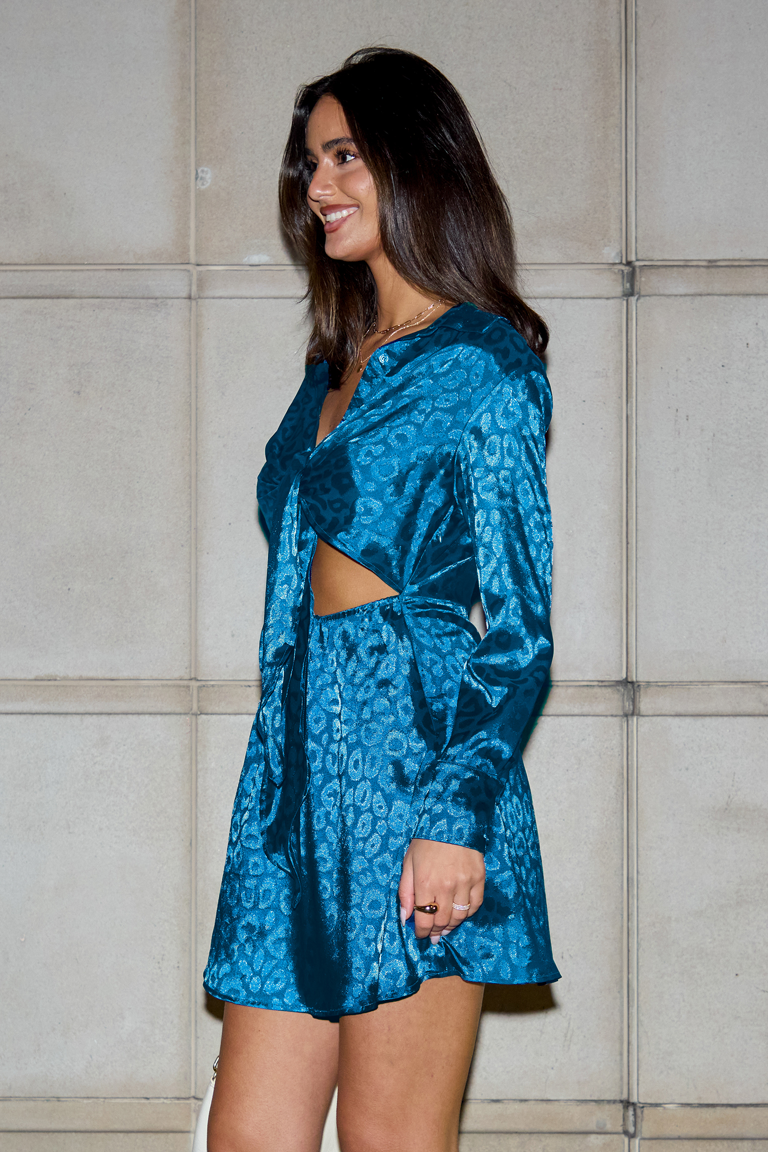 Blue Leopard Collared Long Sleeve Cutout Mini Dress