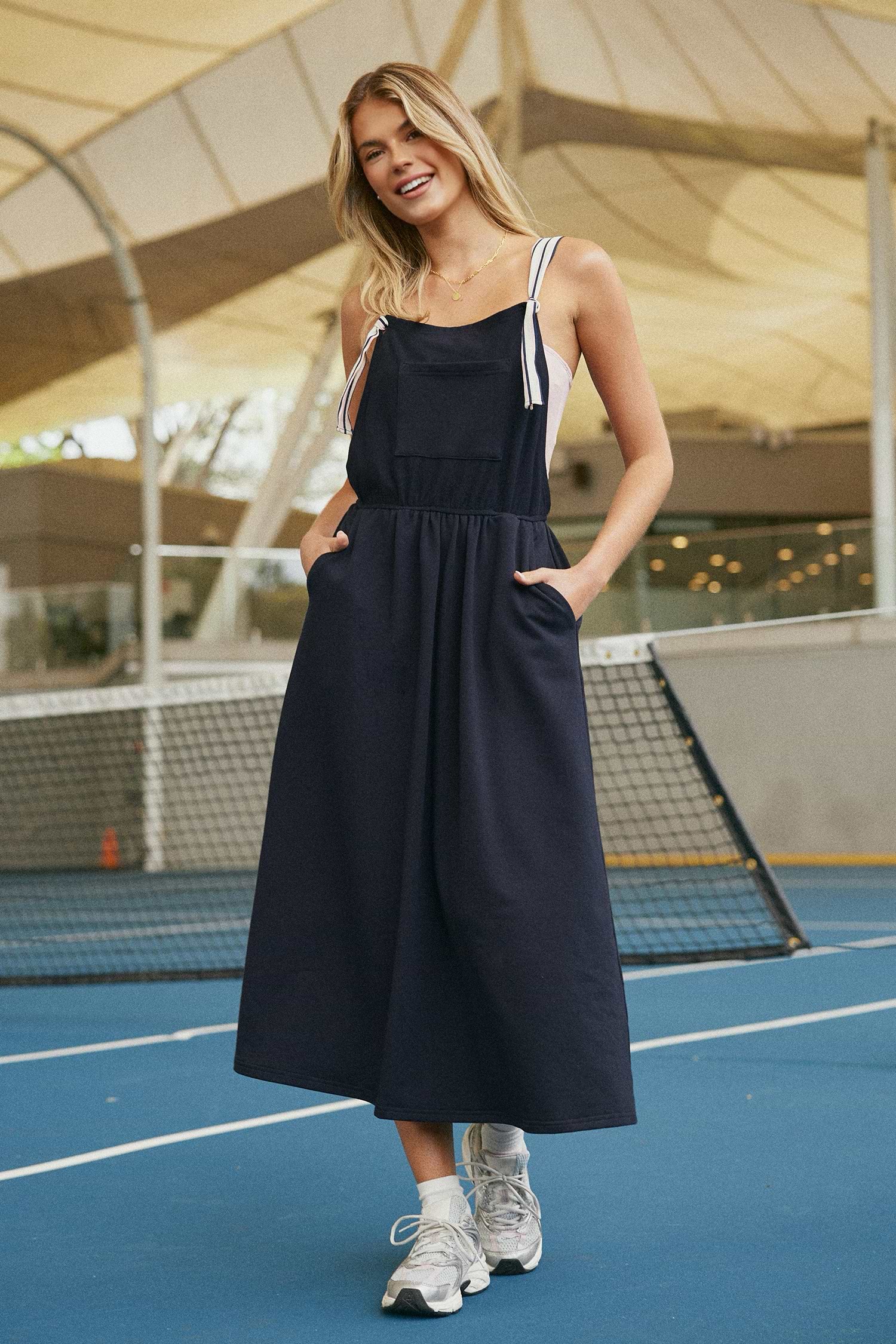 HomeBlue Sleeveless Square Neck Midi Jersey Dress