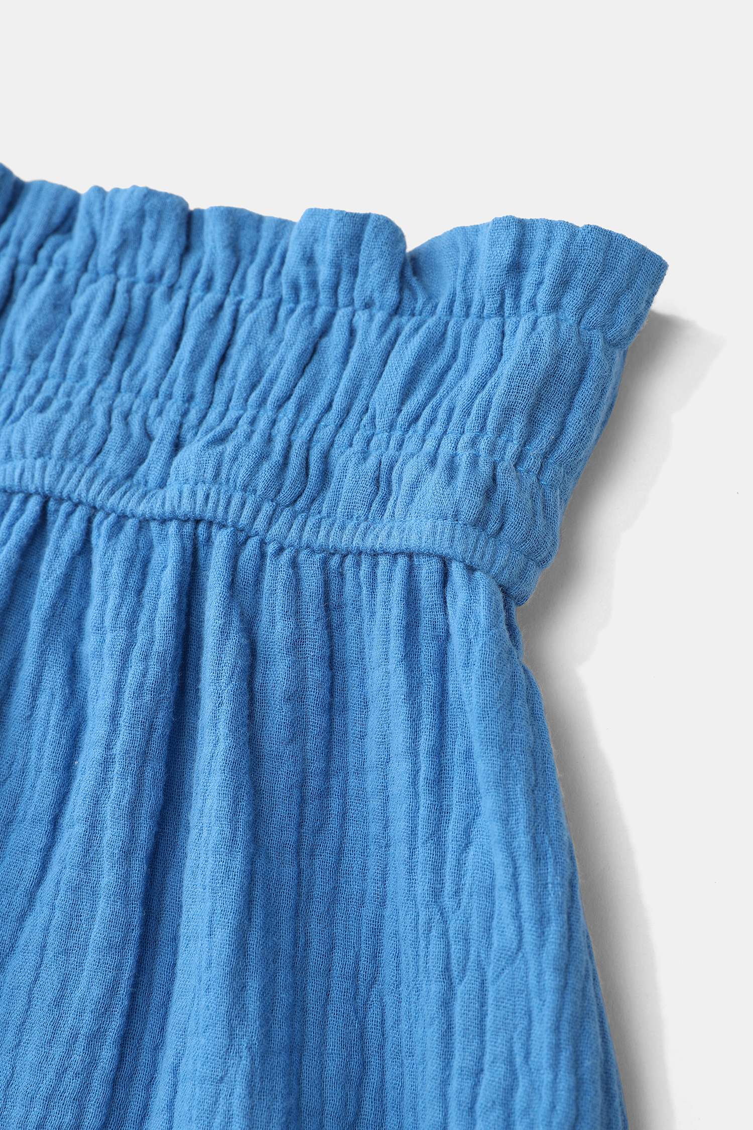 Blue Smocked Paperbag Waist Shorts