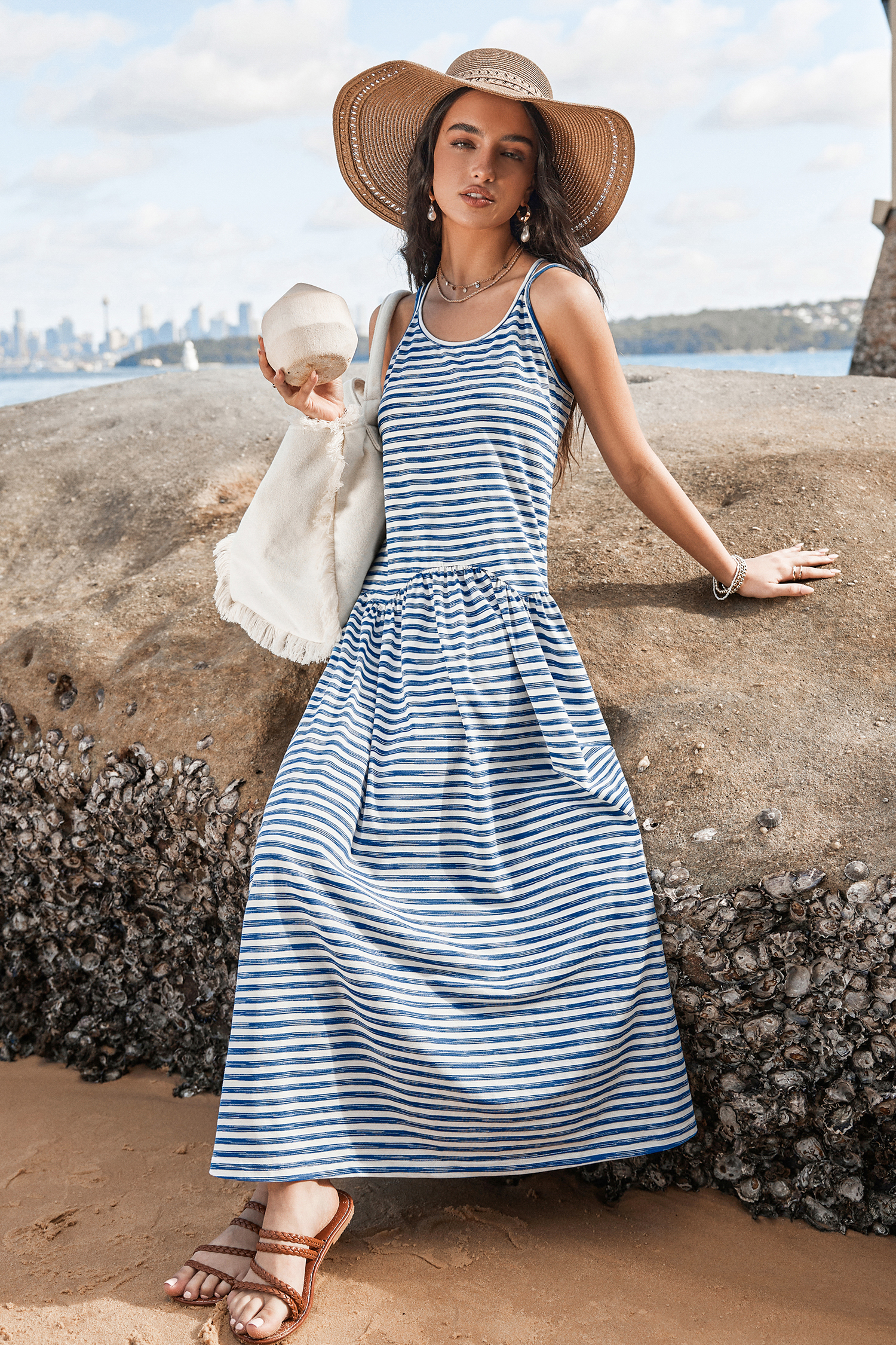 HomeBlue Stripe Scoop Neck Drop Waist Maxi Dress