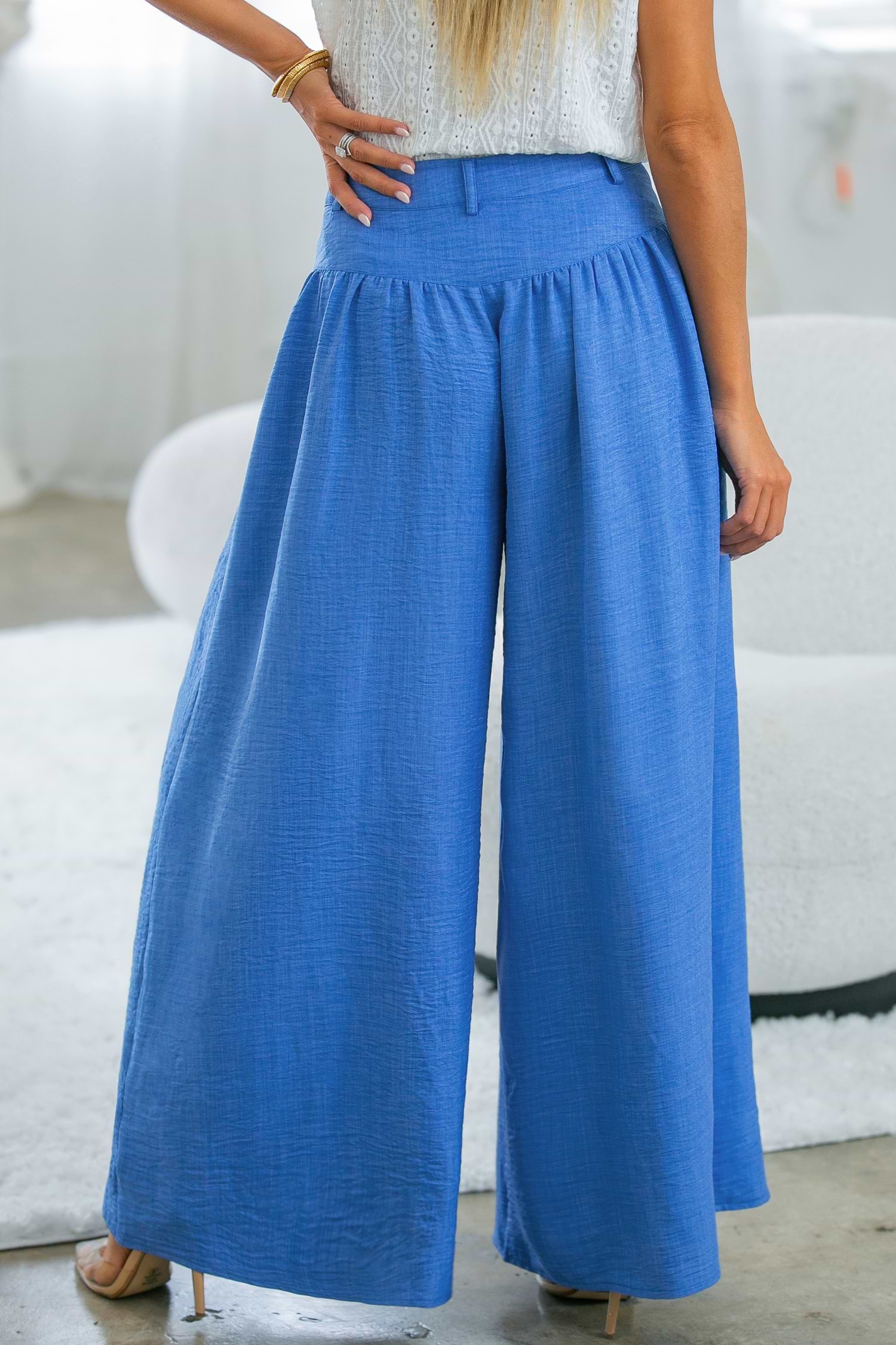 HomeBlue Tie Waist Wide Leg Pants