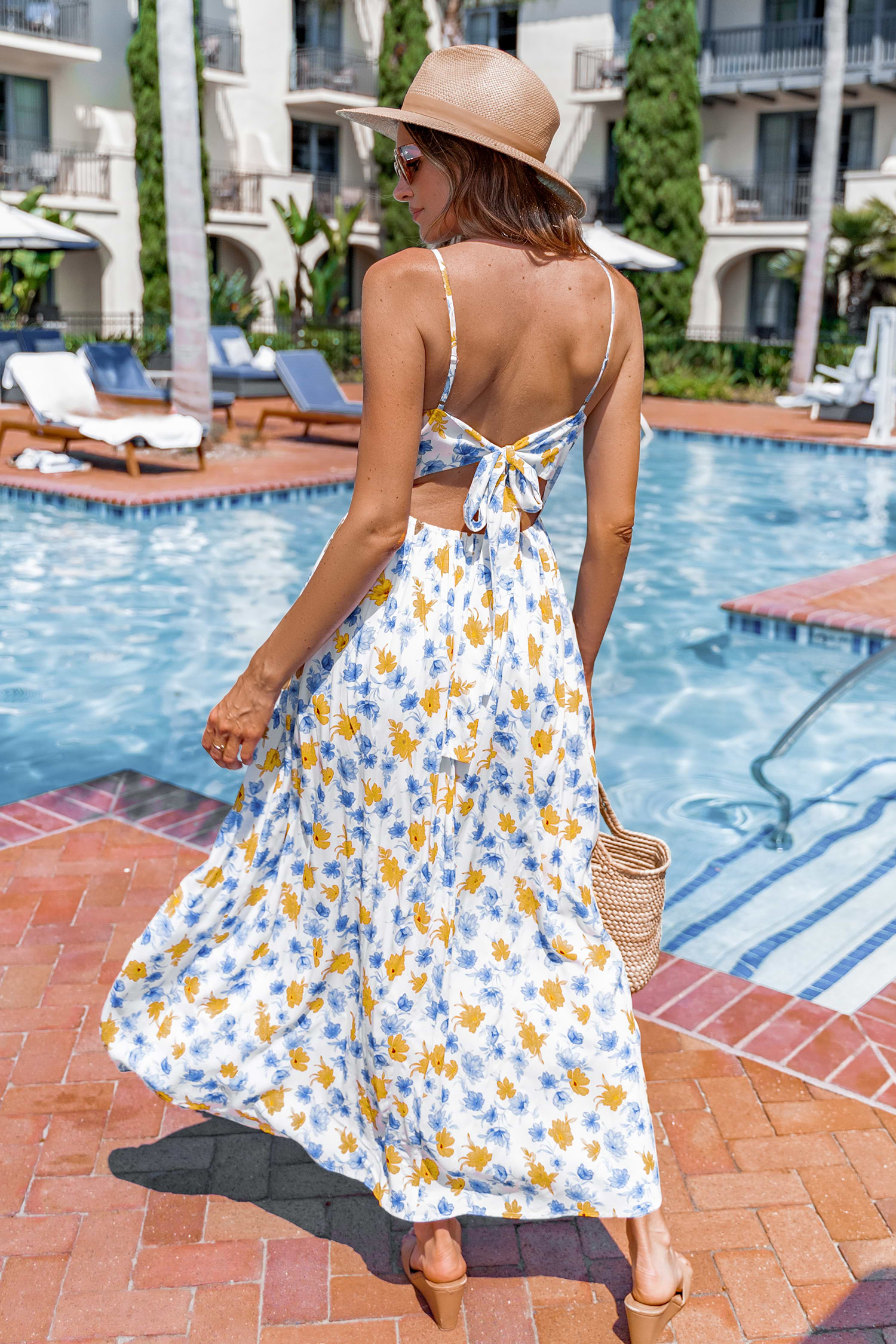 Blue & Yellow Floral Sweetheart Twist & Keyhole Maxi Dress